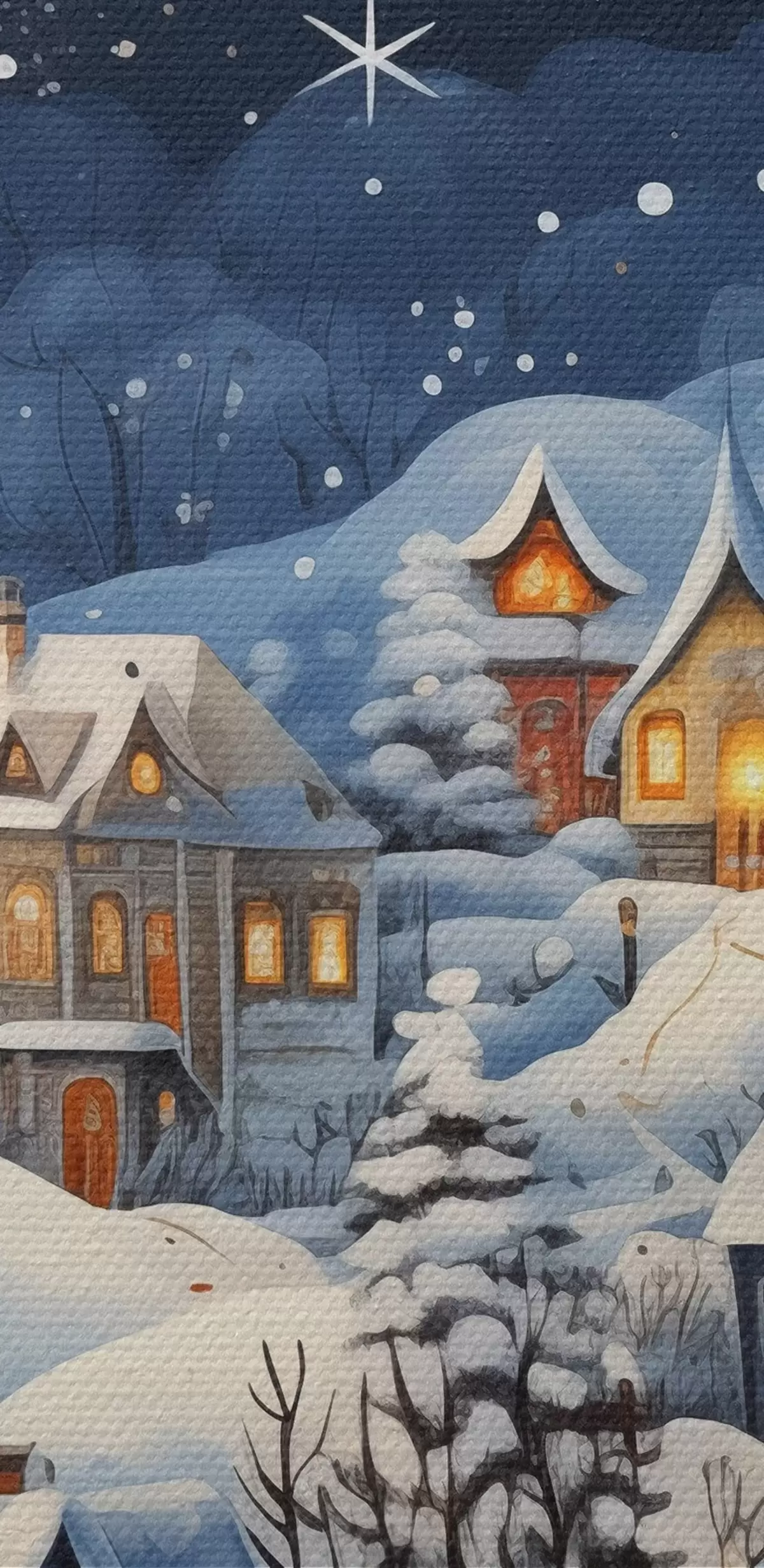 Kép Téli táj hóval borított vidéki házakkal a csillagos éjszakai égbolt hátterében Nr r41275