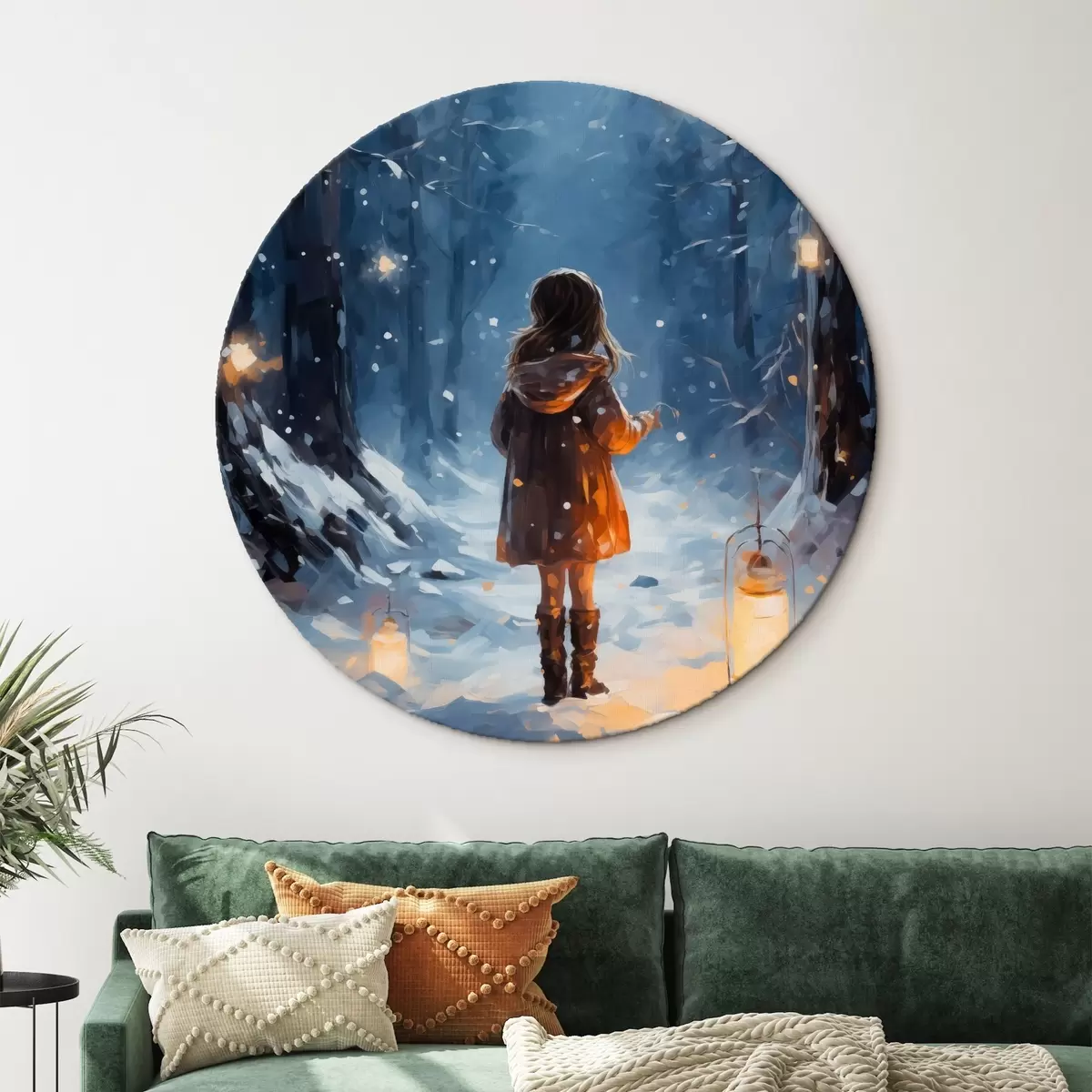 Kép Lány az éjszakai téli erdőben fák és lámpások között Nr r41277