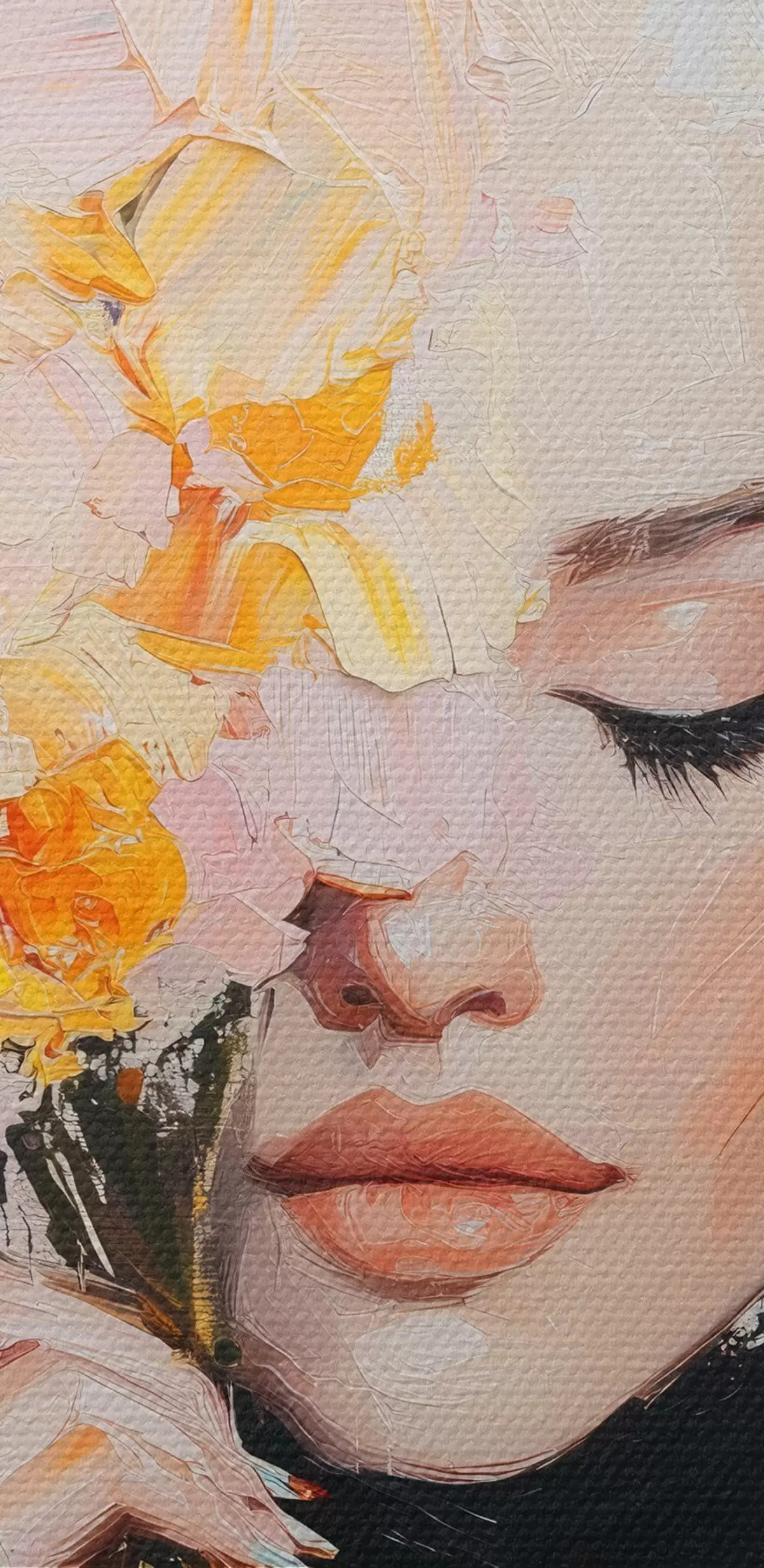 Kép Absztrakt nő egy csokor virággal a kezében ecsetvonásokkal Nr r41355