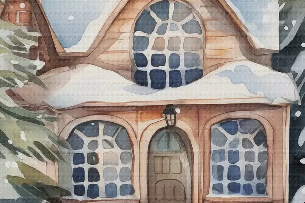 Kép Karácsonyi dekoratív gömb akvarell hó házzal és fenyőfákkal Nr r41363