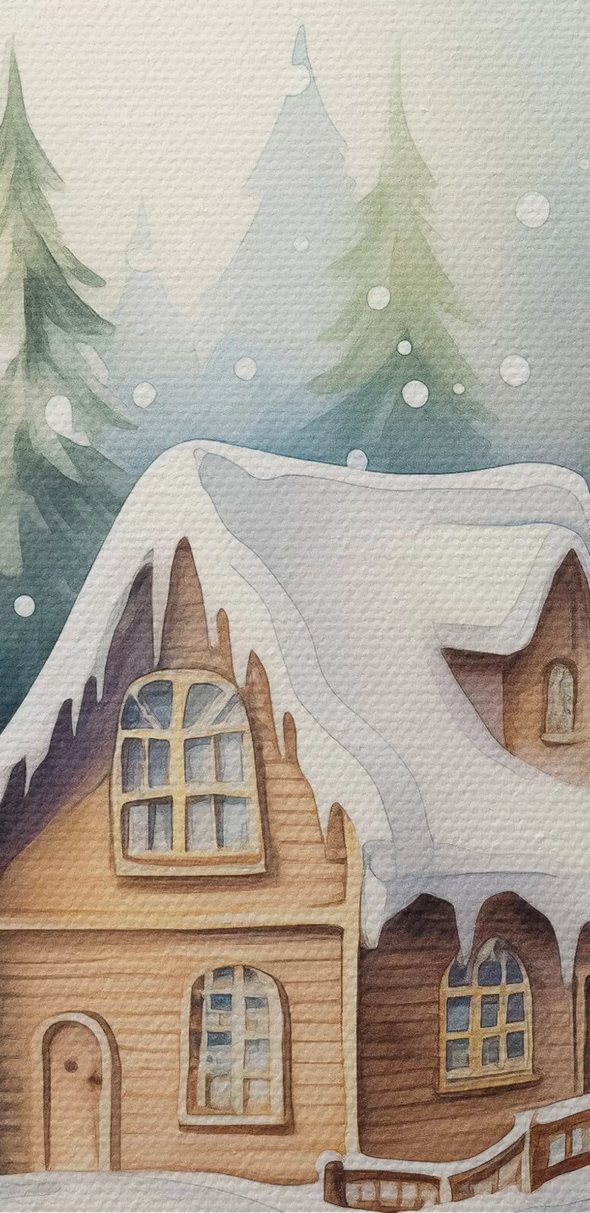 Kép Akvarell kristálygömb téli tájjal, ház az erdőben, hó Nr r41366
