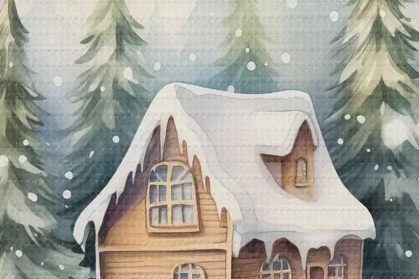 Kép Akvarell kristálygömb téli tájjal, ház az erdőben, hó Nr r41366