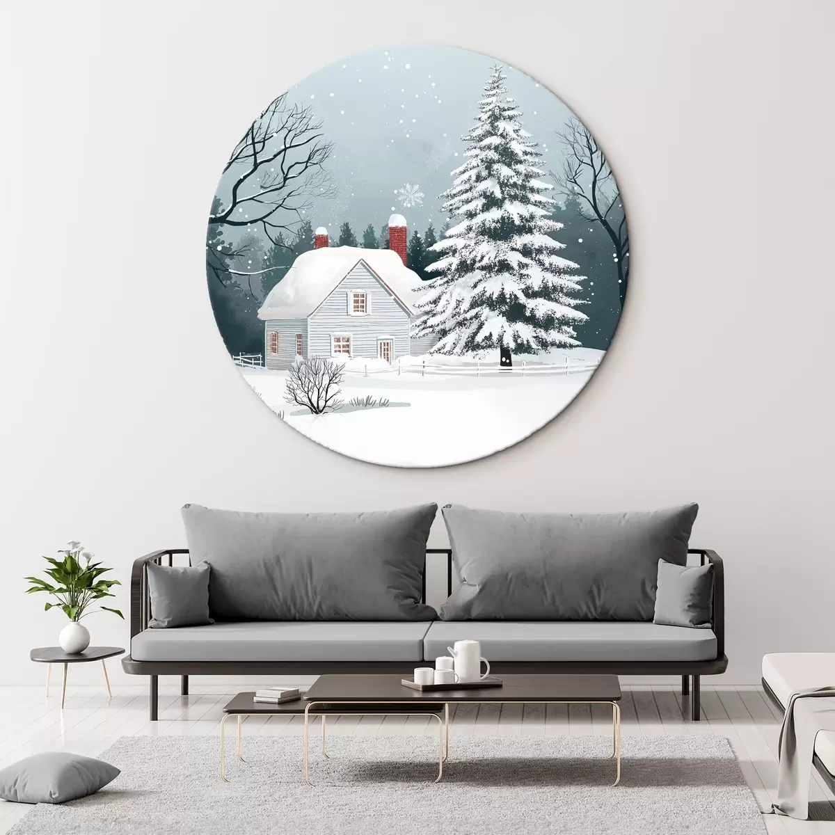 Kép Téli jelenet hóval borított házzal, erdő, fenyőfák Nr r41369