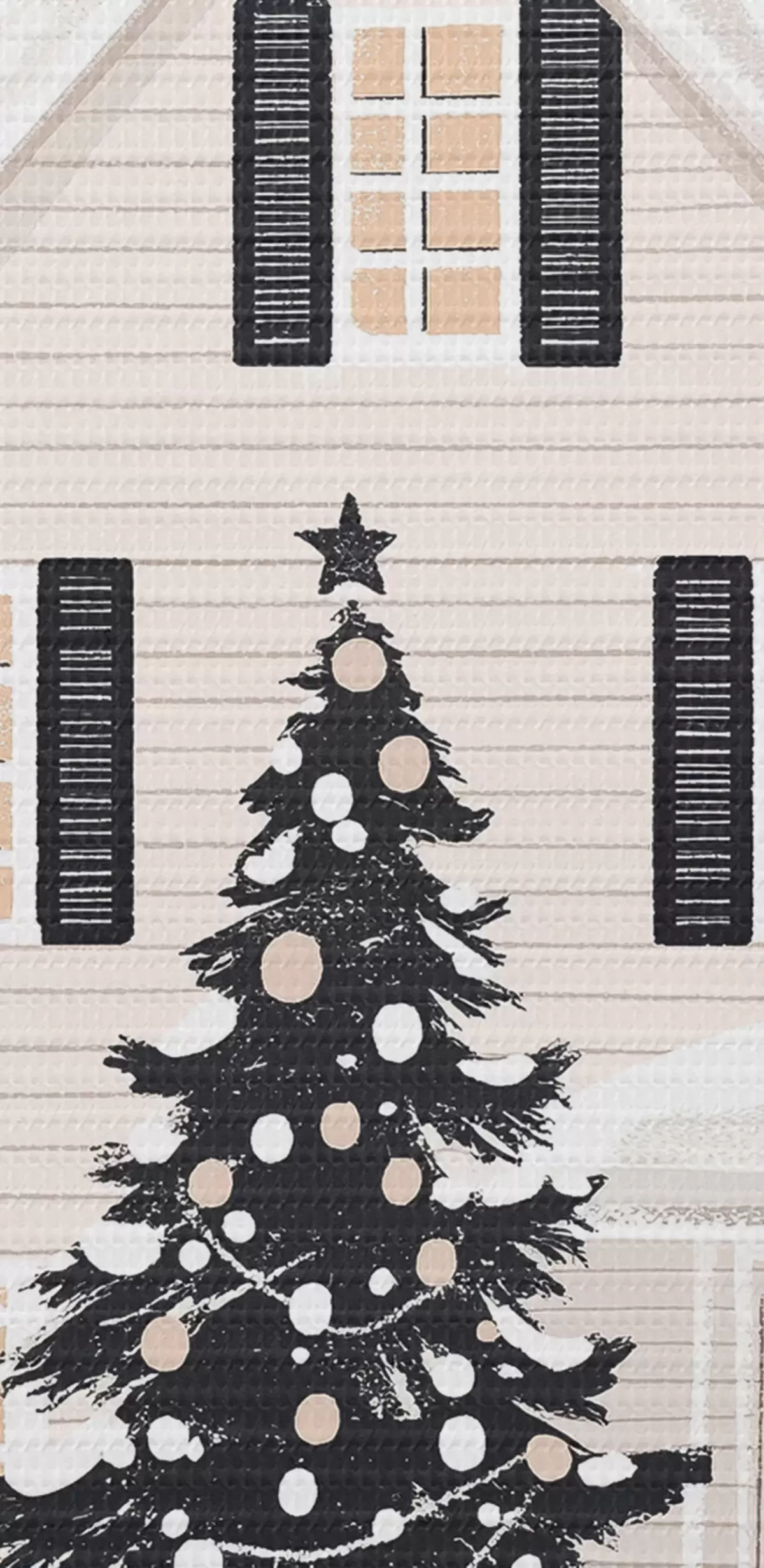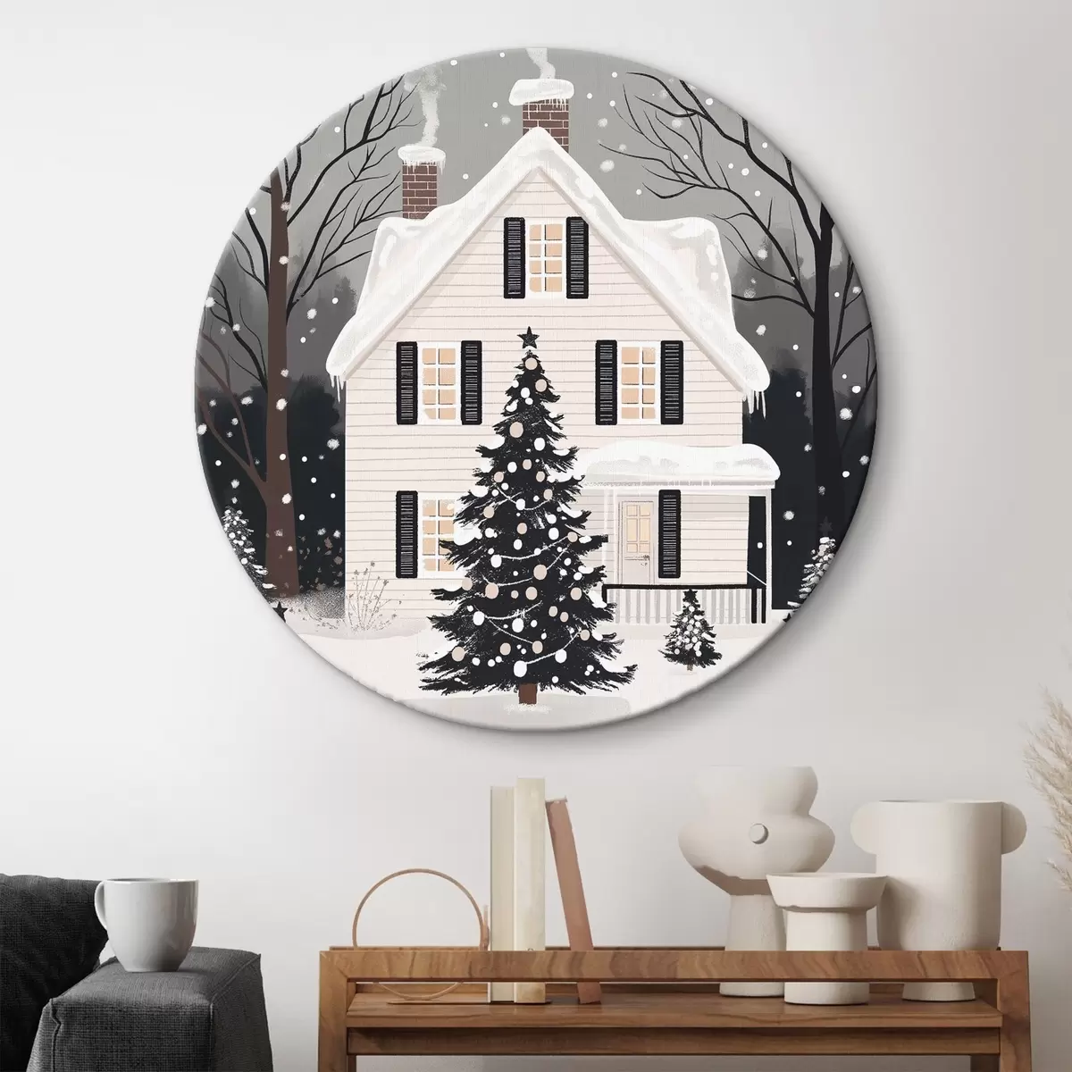 Kép Téli város, feldíszített fenyőfa, karácsony, erdő, gyönyörű ház Nr r41371