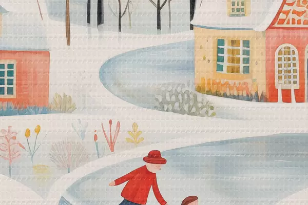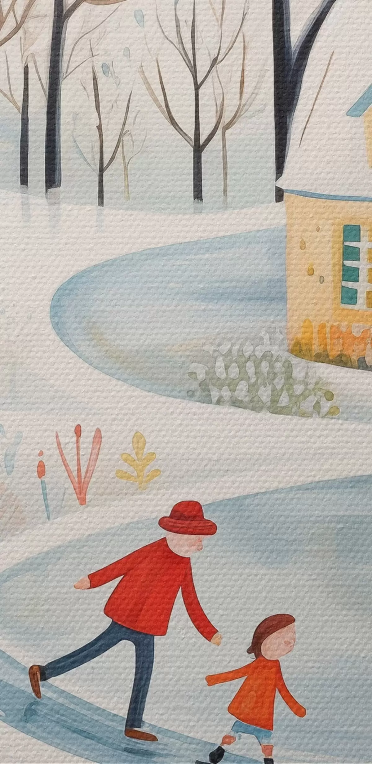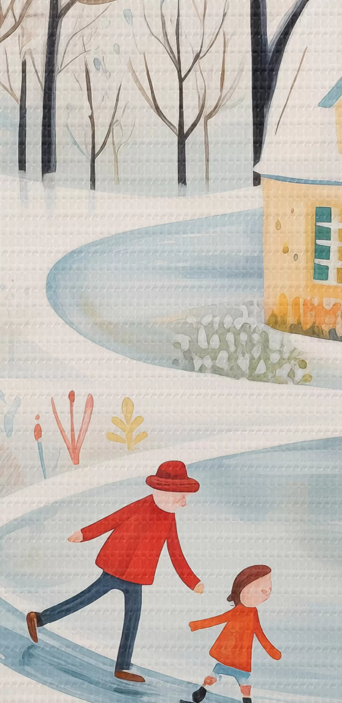 Kép Téli falu, erdő, virágok, korcsolya, színes házak Nr r41378