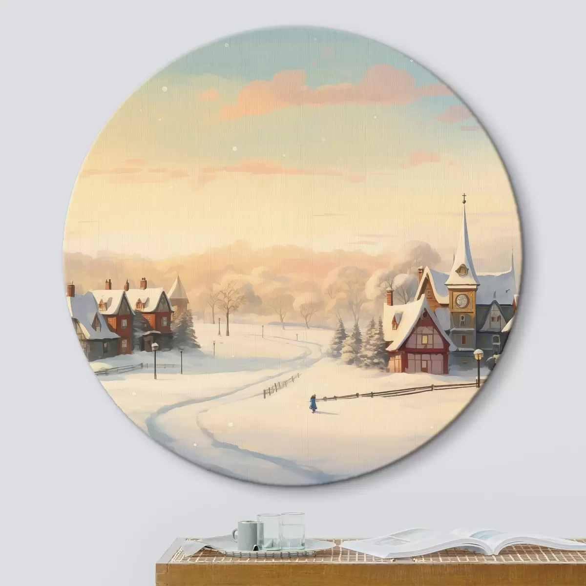 Kép Téli csodaország, házak, naplemente, égbolt, fák, vízfestmény Nr r41383
