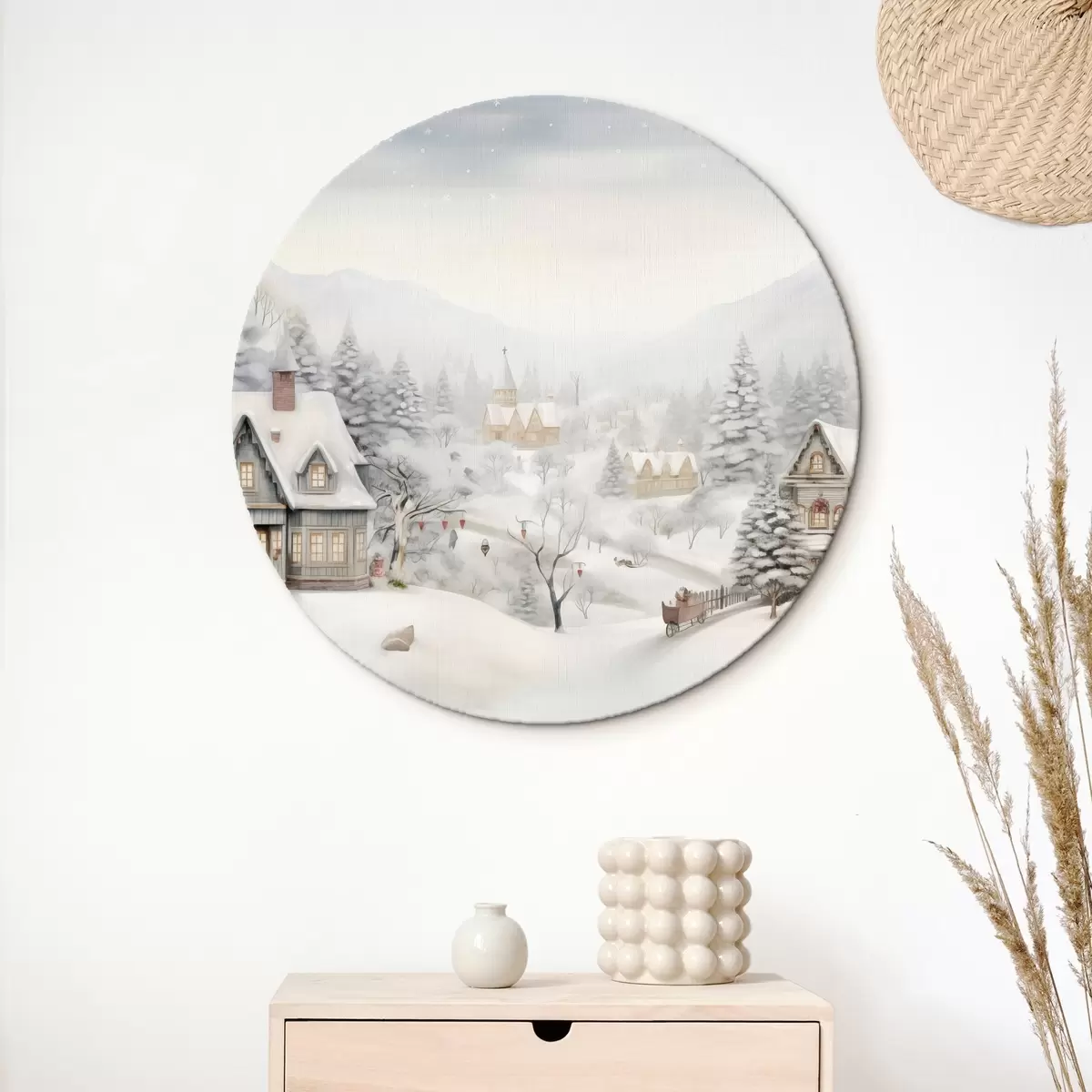 Kép Gyönyörű téli táj faluval, fenyőfákkal, házakkal, hegyekkel Nr r41384