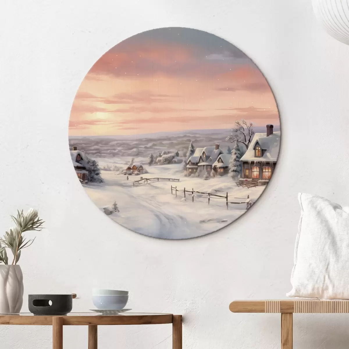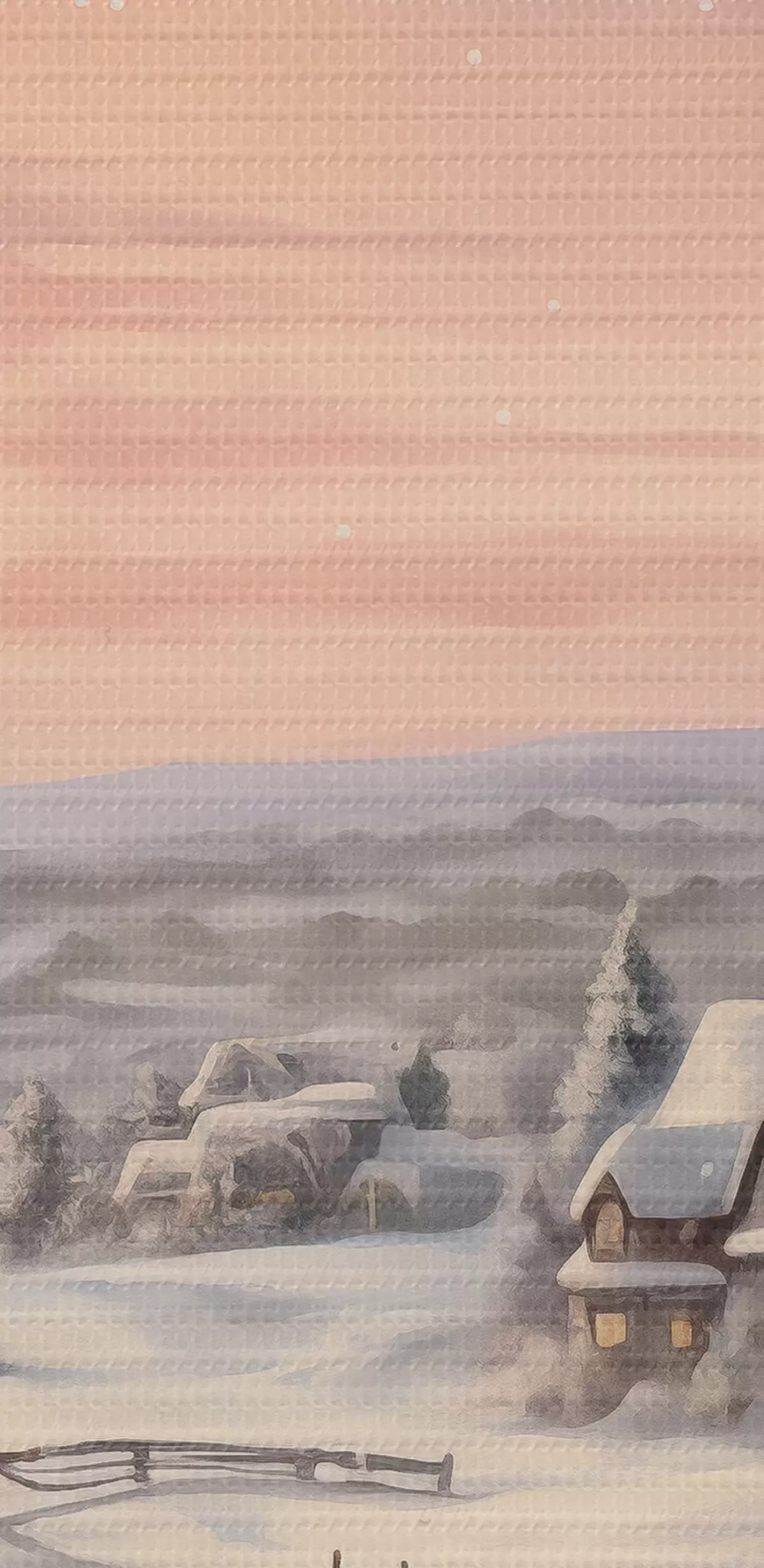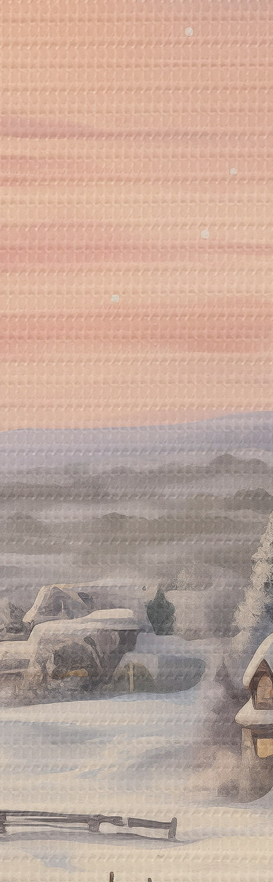 Kép Naplemente a téli faluban, rusztikus, akvarell, hópelyhek, hóvirágok Nr r41386