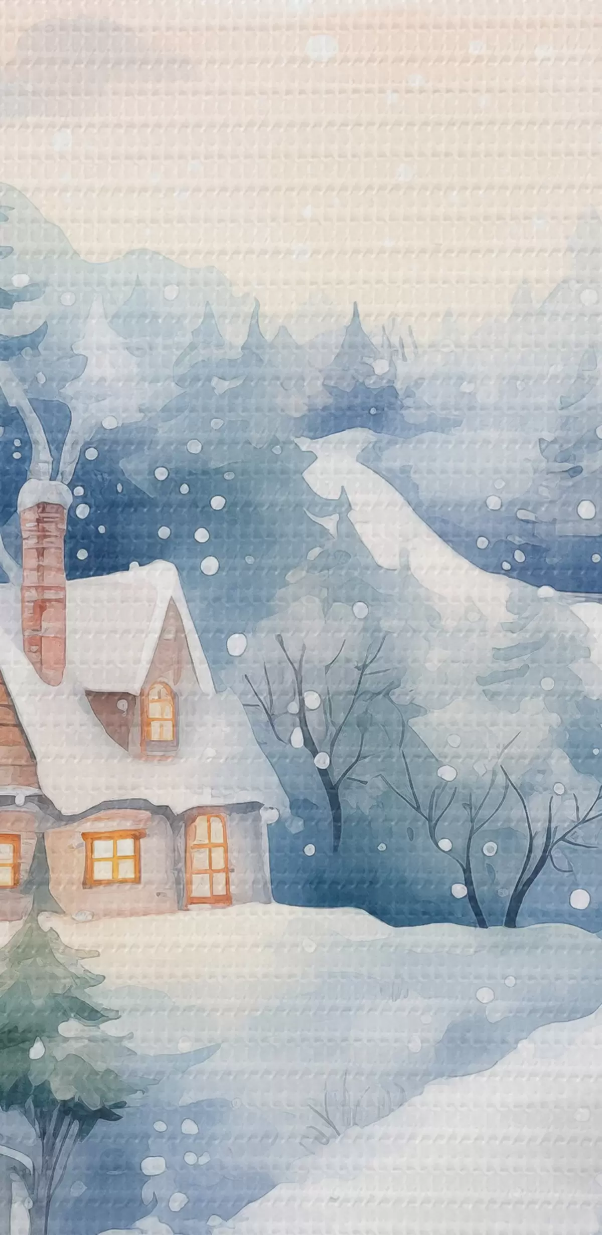 Kép Akvarell téli táj, fenyves erdő, házak Nr r41387