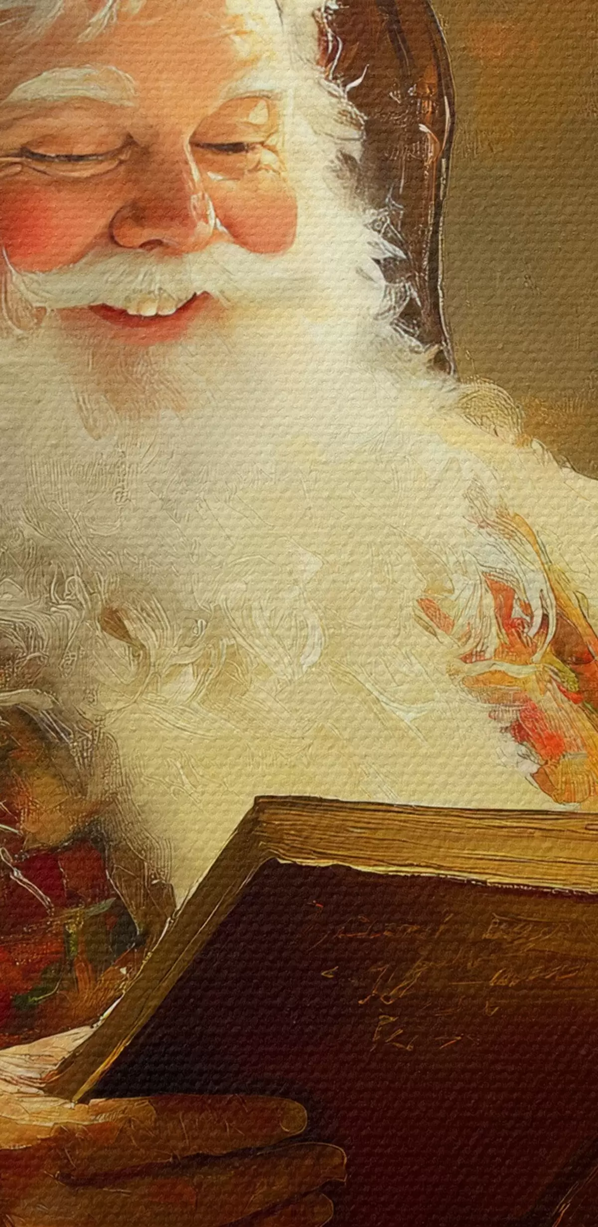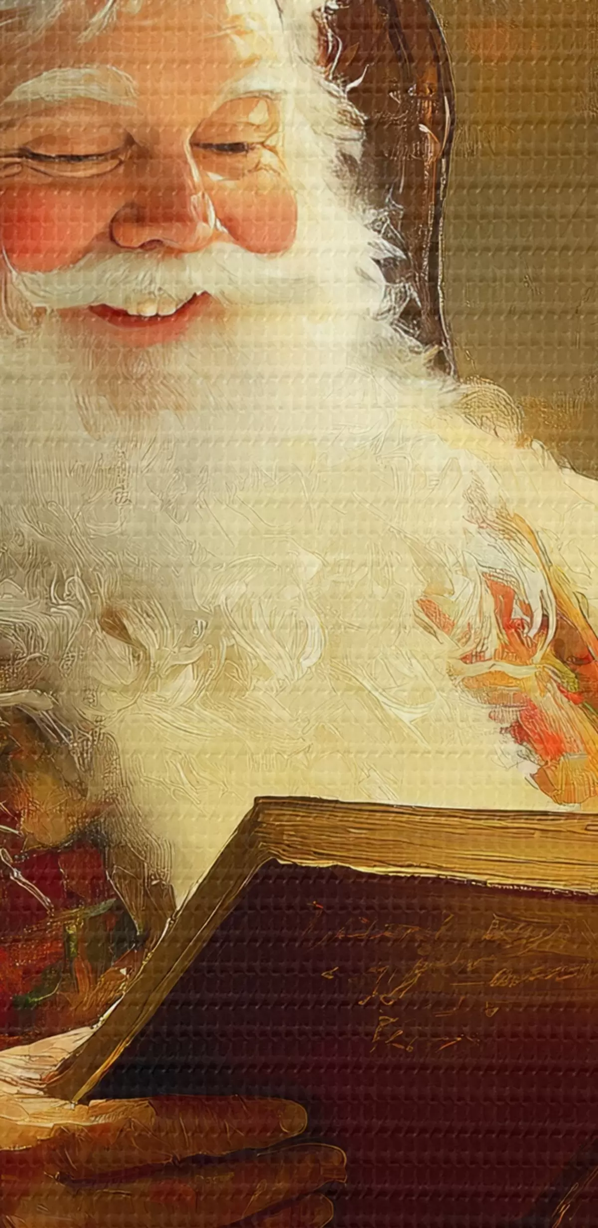 Kép A Mikulás könyvet olvas a karácsonyfa mellett Nr r42100