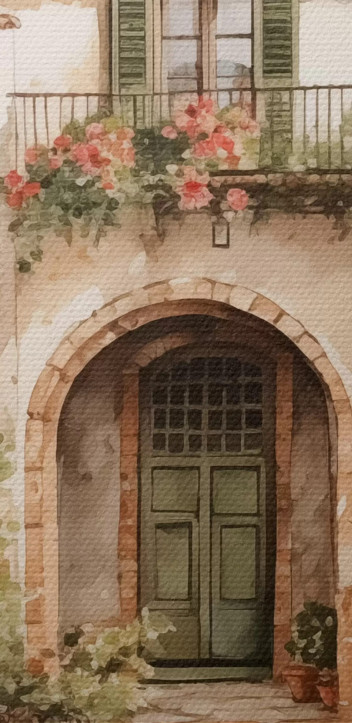Kép Olasz udvar virágcserepekkel akvarell utánzással Nr r42126