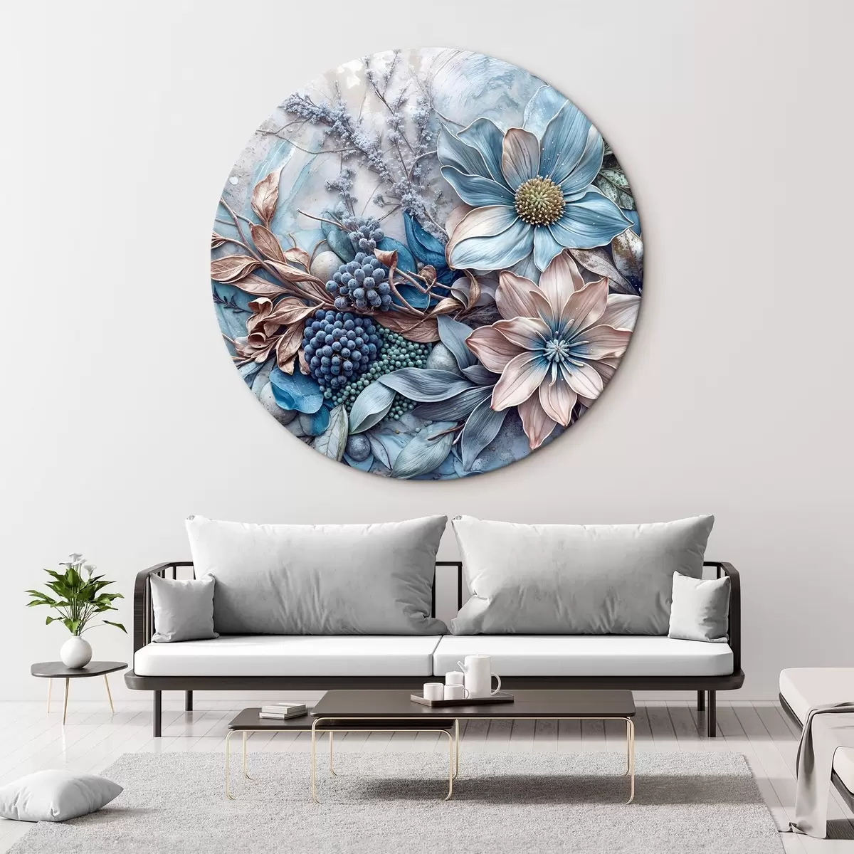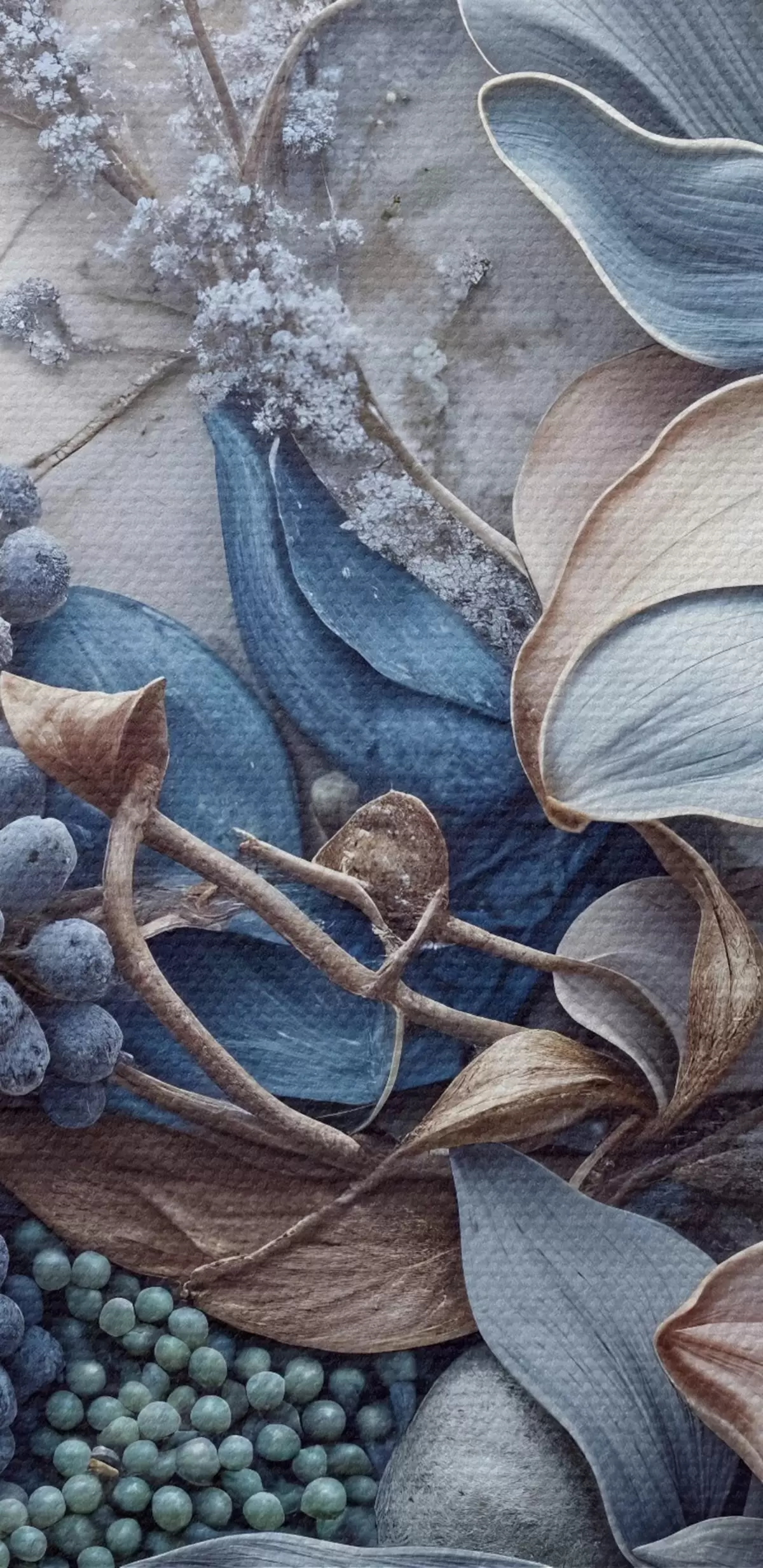 Kép Részletes textúrájú, absztrakt, buja virágminták nagy, élénk kék és rózsaszín virágokkal, bogyókkal és egyéb botanikai elemekkel Nr r42210