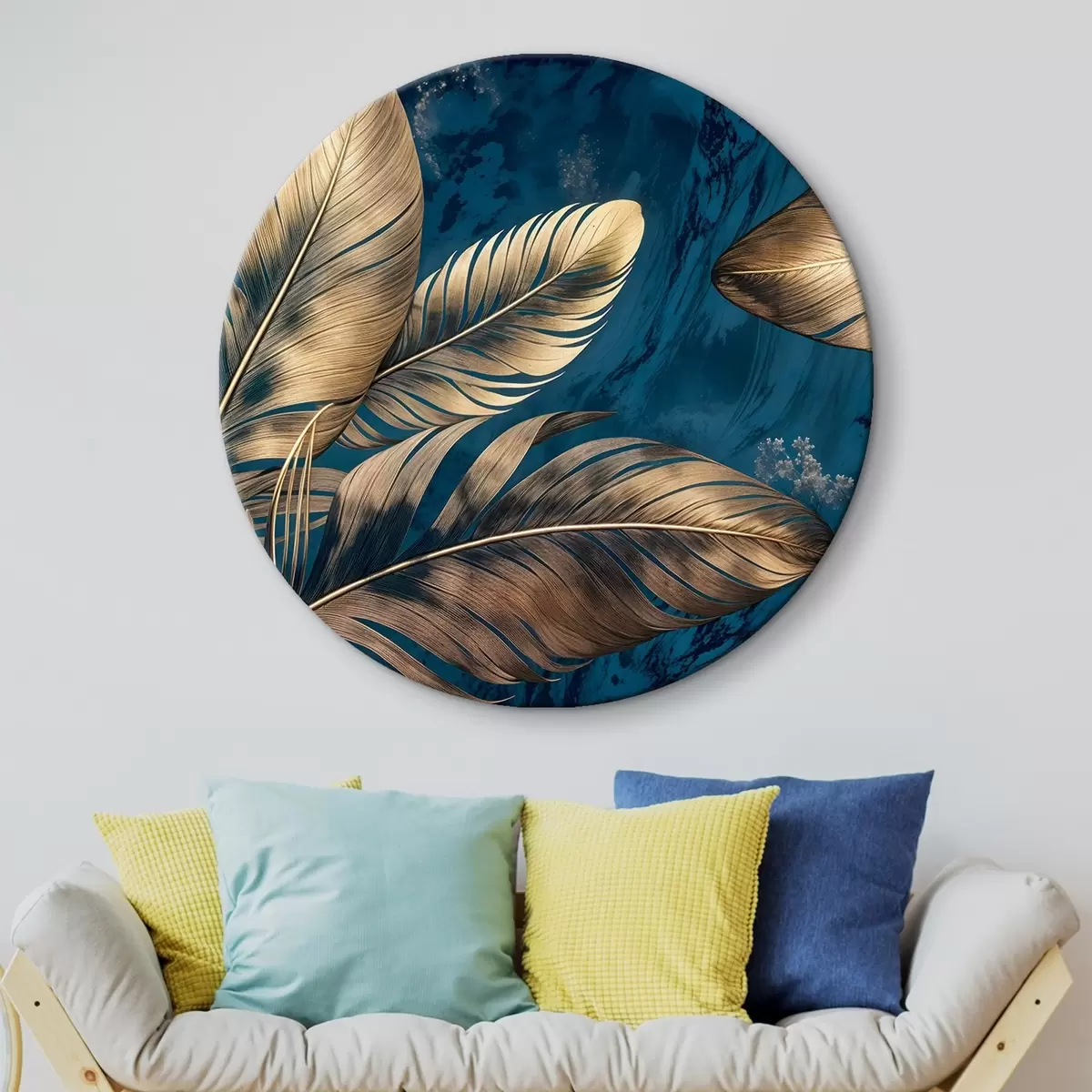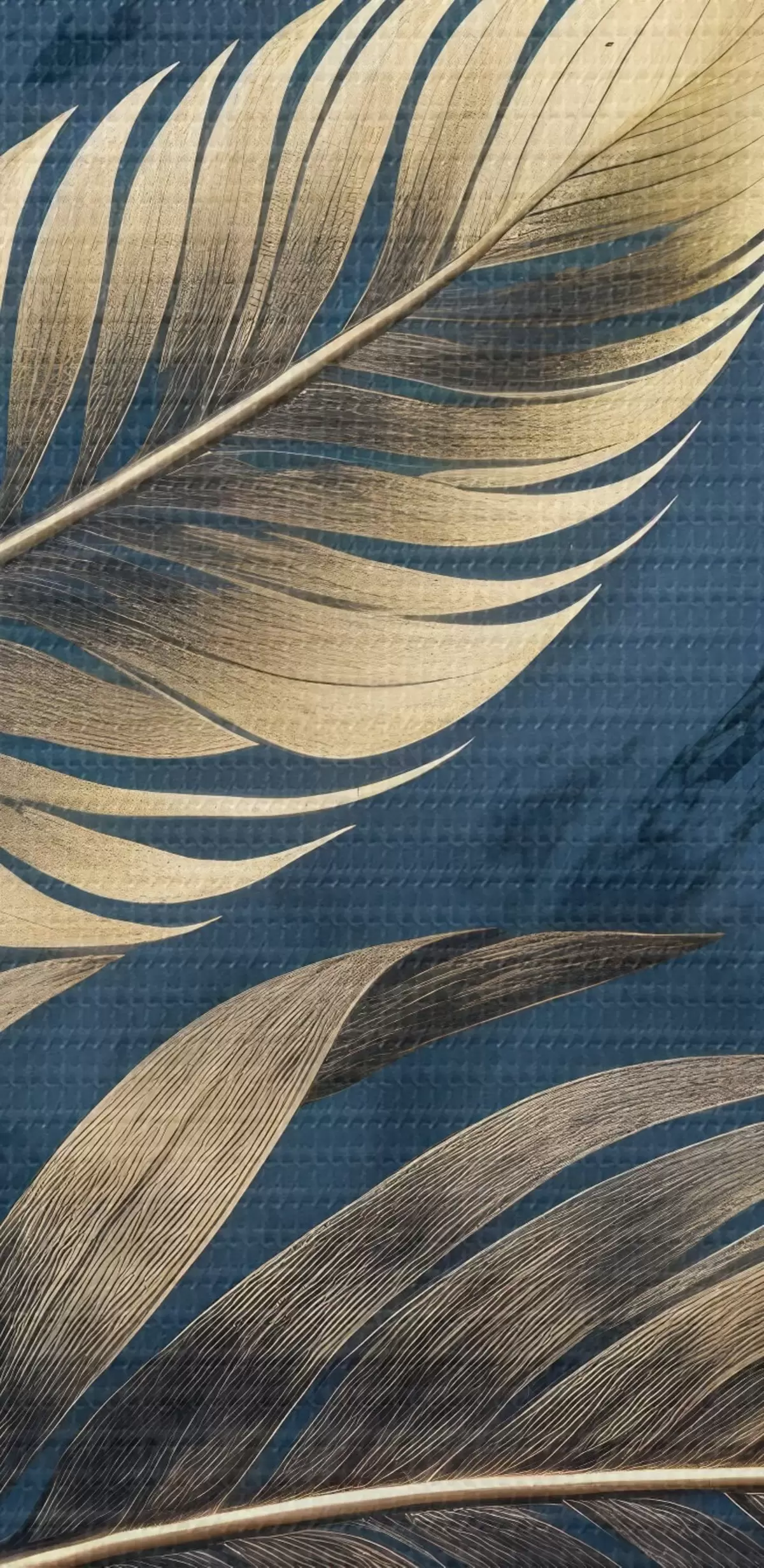 Kép Sárga és bézs absztrakt dekoratív tollak lebegő sötétkék texturális háttéren Nr r42218