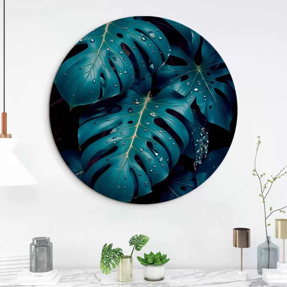 Kép Buja trópusi monstera levelek vízcseppekkel sötét háttér előtt , ami egy hangulatos és atmoszférikus nyomatot hoz létre Nr r42233