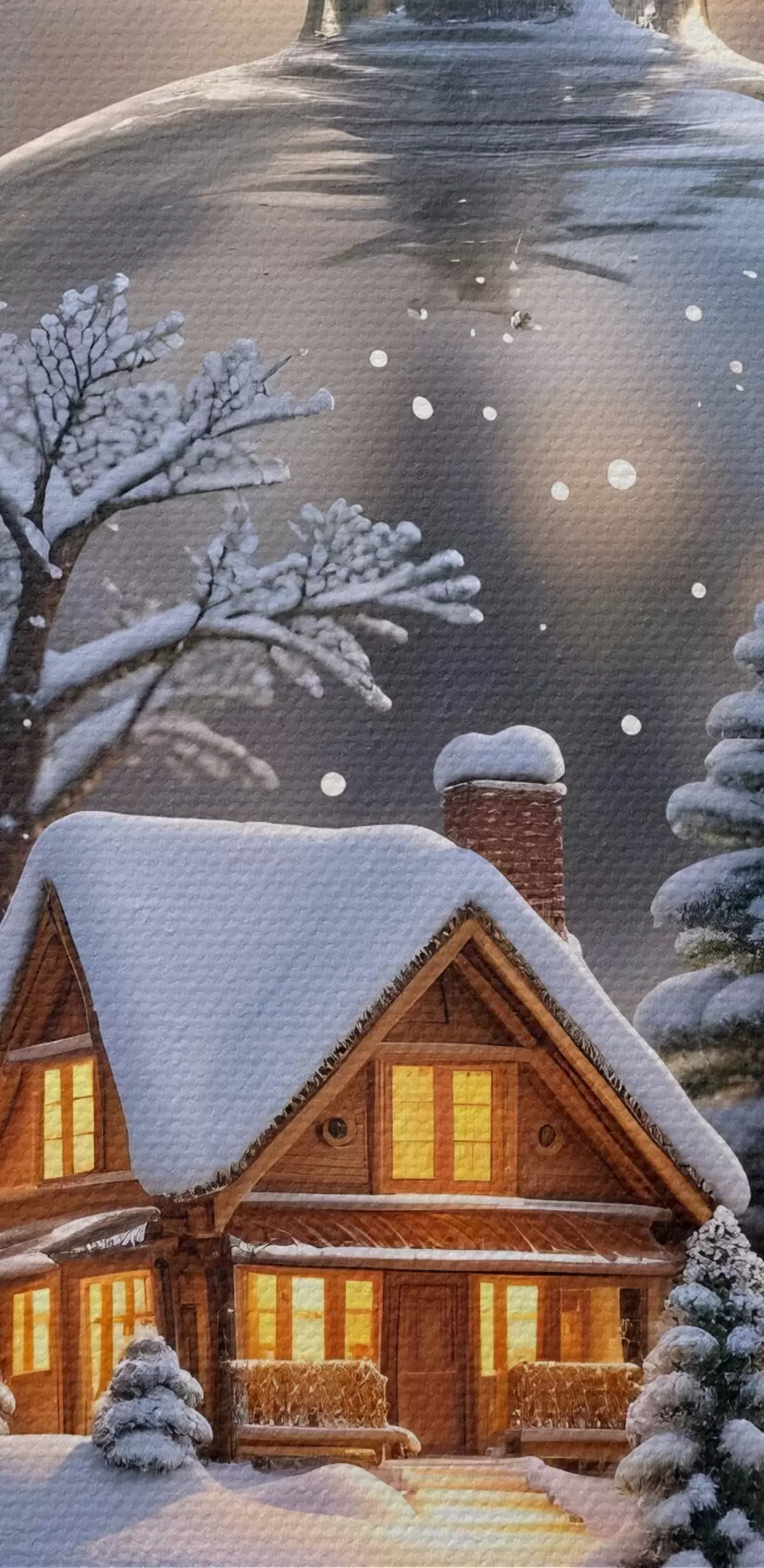Kép Karácsonyi üveggömb havas téli tájjal, benne egy hangulatos faházzal az erdőben, fenyőfákkal Nr r42236