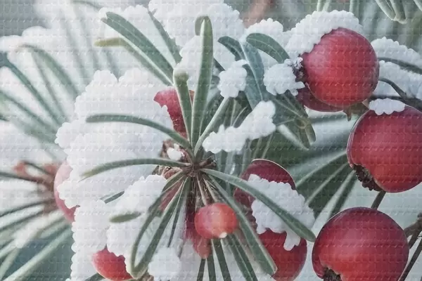 Kép Havas fenyőfa ága piros bogyókkal , téli jelenet Nr r42238