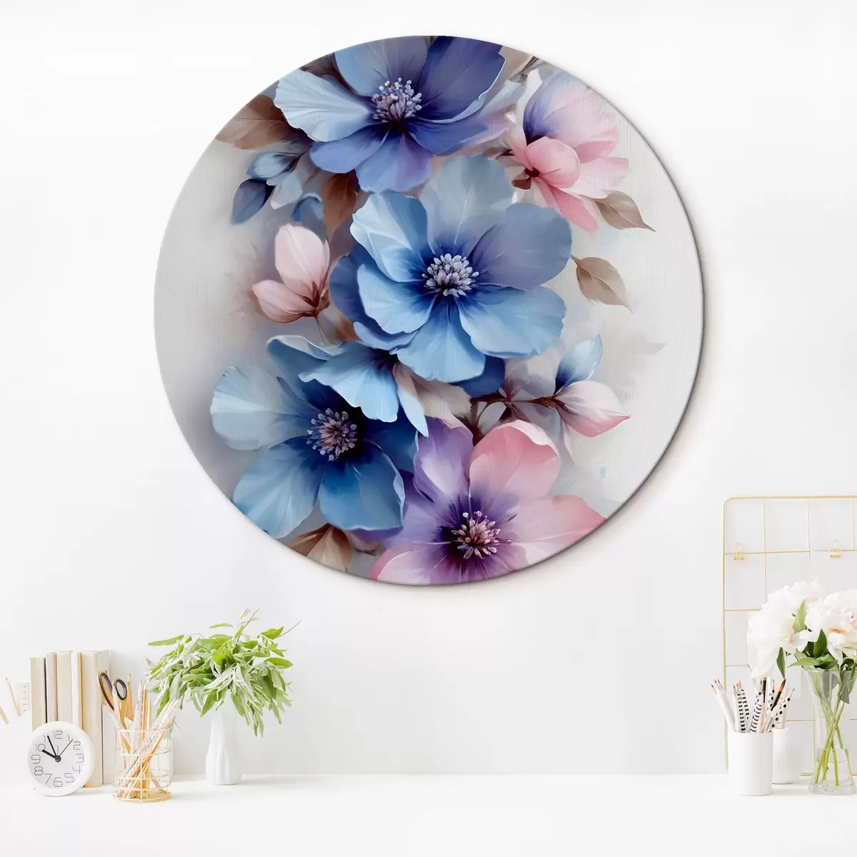 Kép Finom kék és rózsaszín virágok, lágy szirmokkal és központokkal, gyönyörű virágmintában elrendezve, világos háttéren Nr r42241