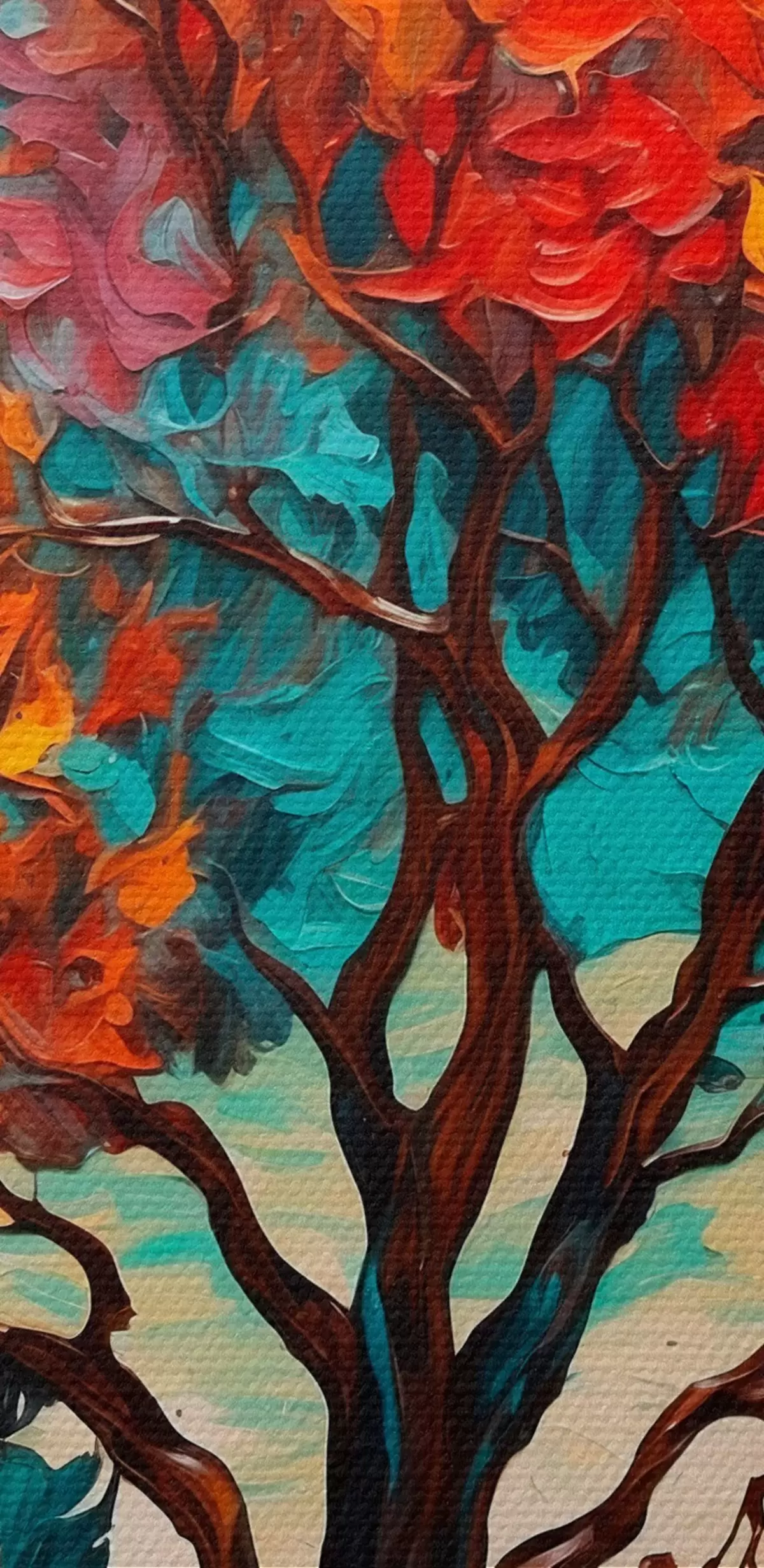 Kép Fa narancssárga-kék háttéren olajfestmény stílusban Nr r42267