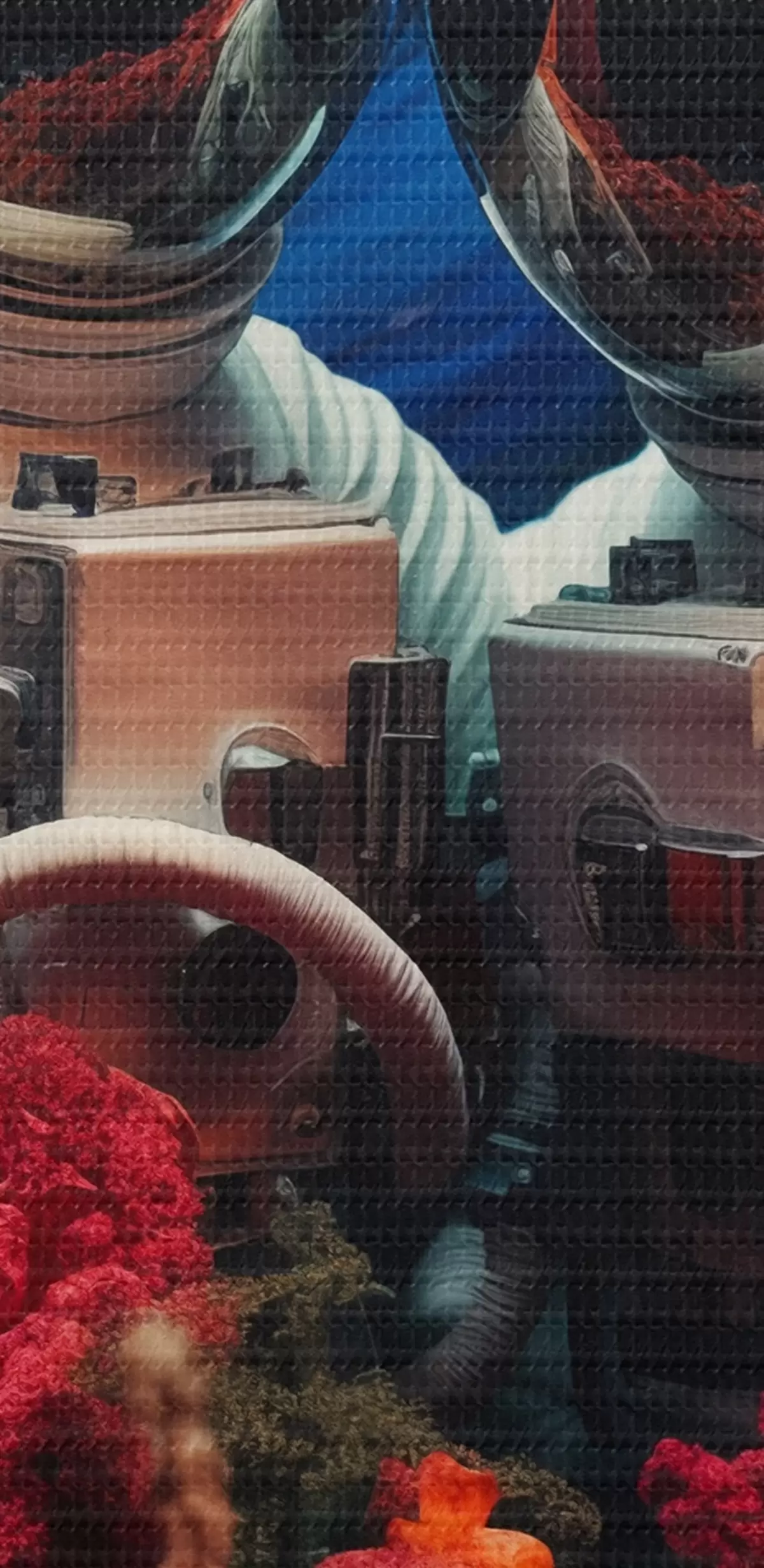 Ahhoz, hogy a vásznat a feszítőrúdra feszítsük anélkül, hogy a kép megsérülne, tükrözött képet használunk.