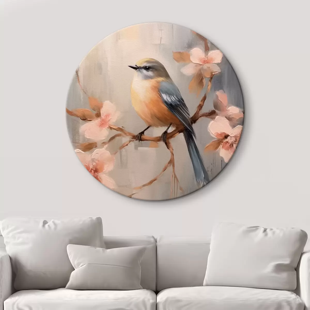 Kép Madár egy ágon és rózsaszín virágok Nr r42302