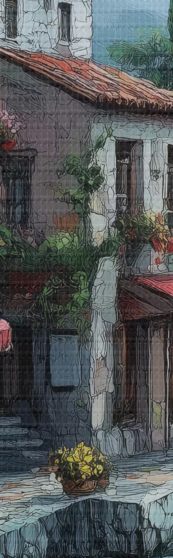 Ahhoz, hogy a vásznat a feszítőrúdra feszítsük anélkül, hogy a kép megsérülne, tükrözött képet használunk.
