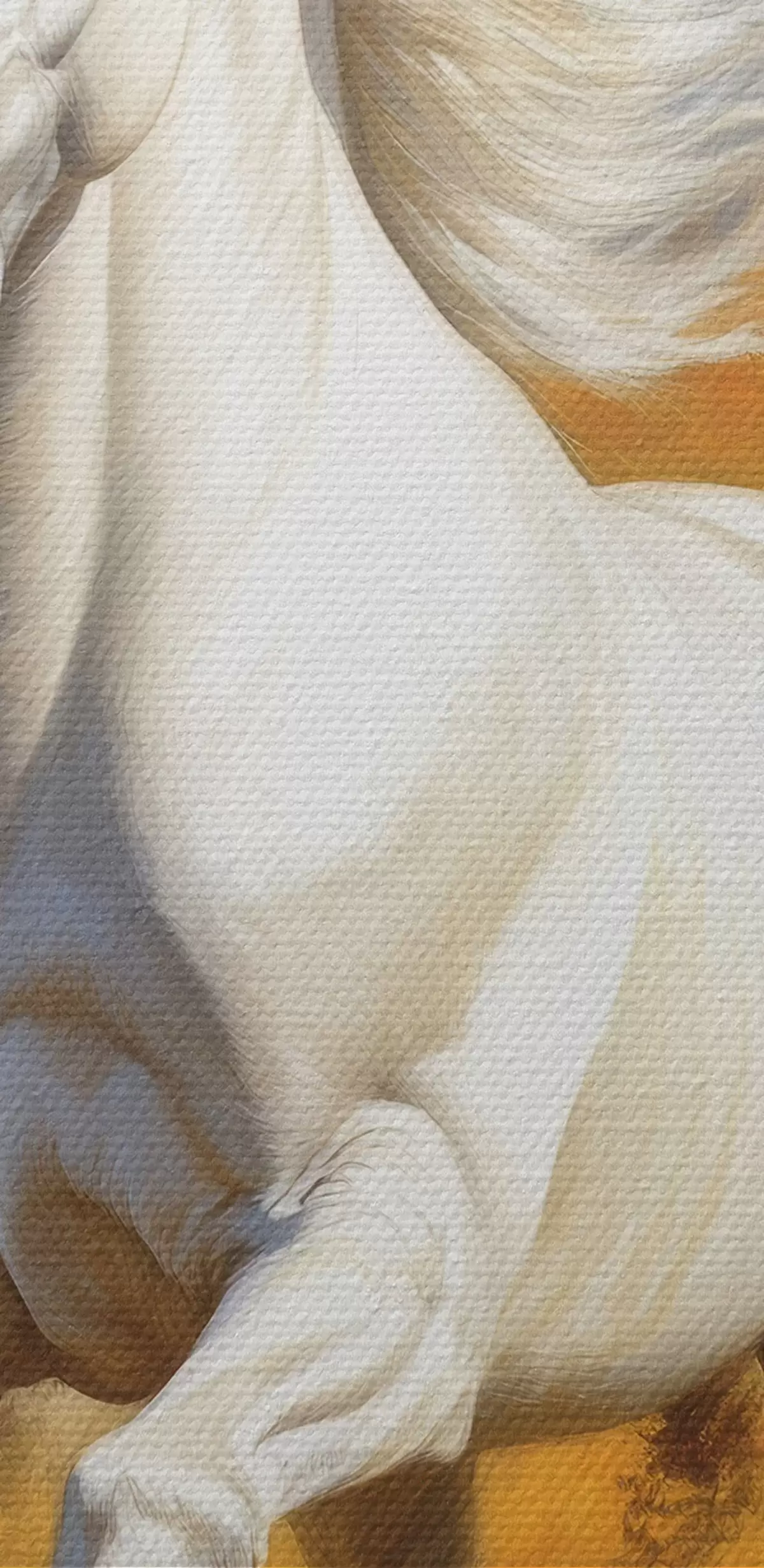 Ahhoz, hogy a vásznat a feszítőrúdra feszítsük anélkül, hogy a kép megsérülne, tükrözött képet használunk.