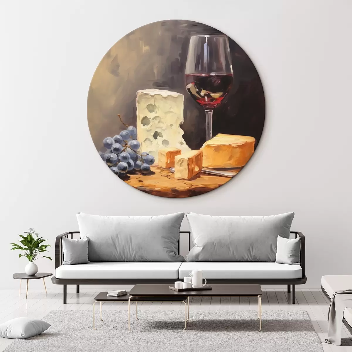 Kép Egy pohár vörösbor és sajtok imitációs festménye Nr r42415