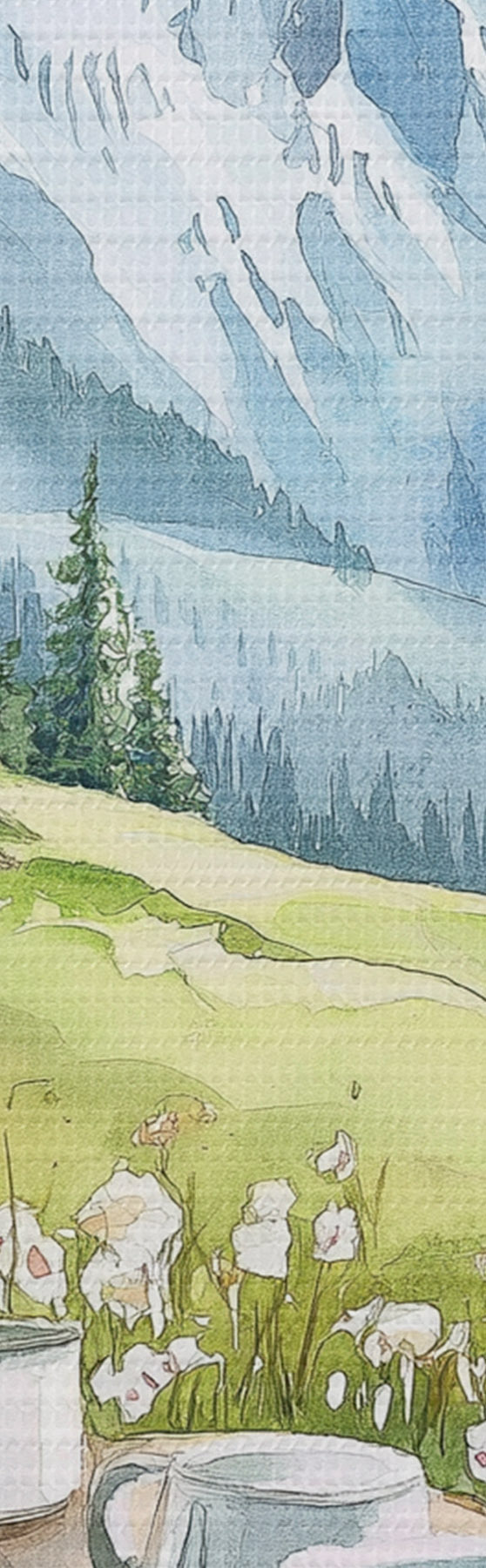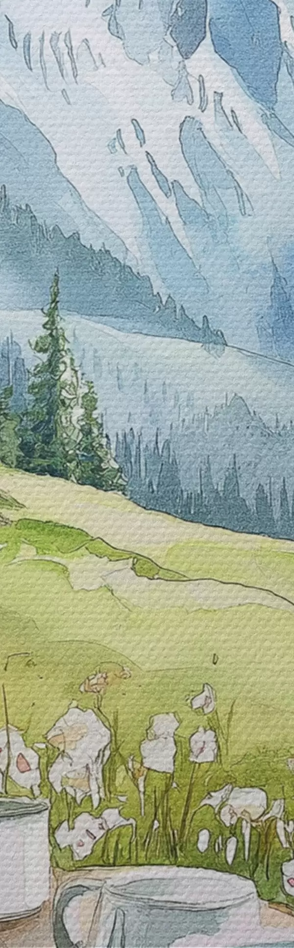 Kép Reggeli az Alpokban, hegyek, erdő, természet, nyár, akvarell stílusban Nr r42426