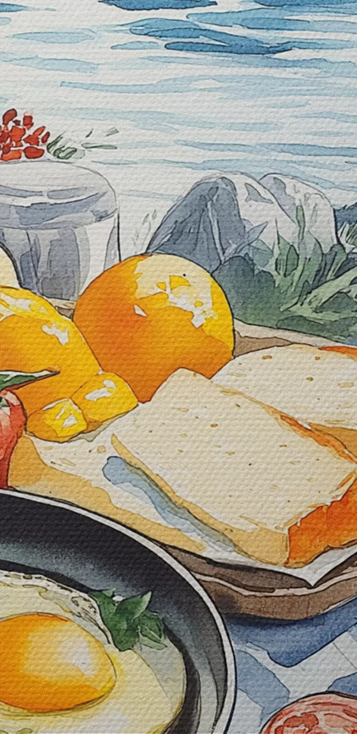 Kép Utazás, szabadtéri életmód, akvarell stílus, Norvégia, reggeli Nr r42430