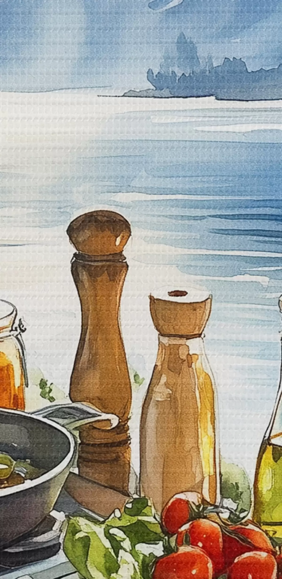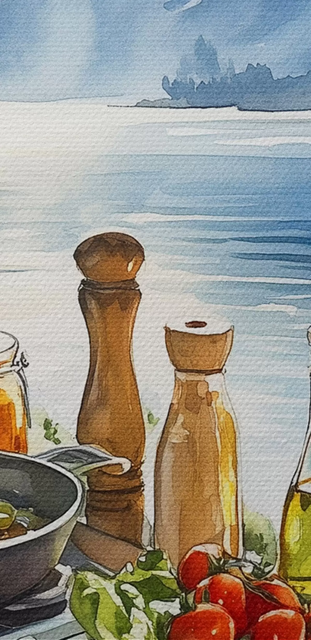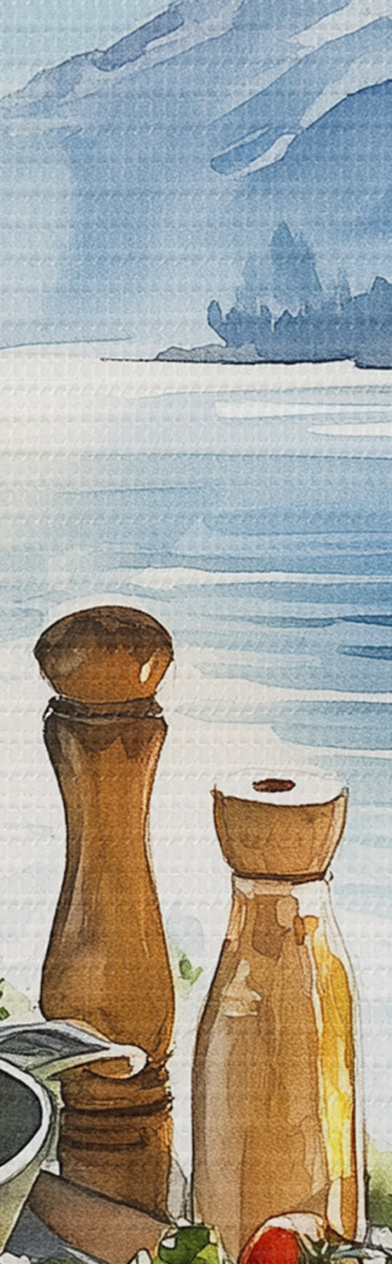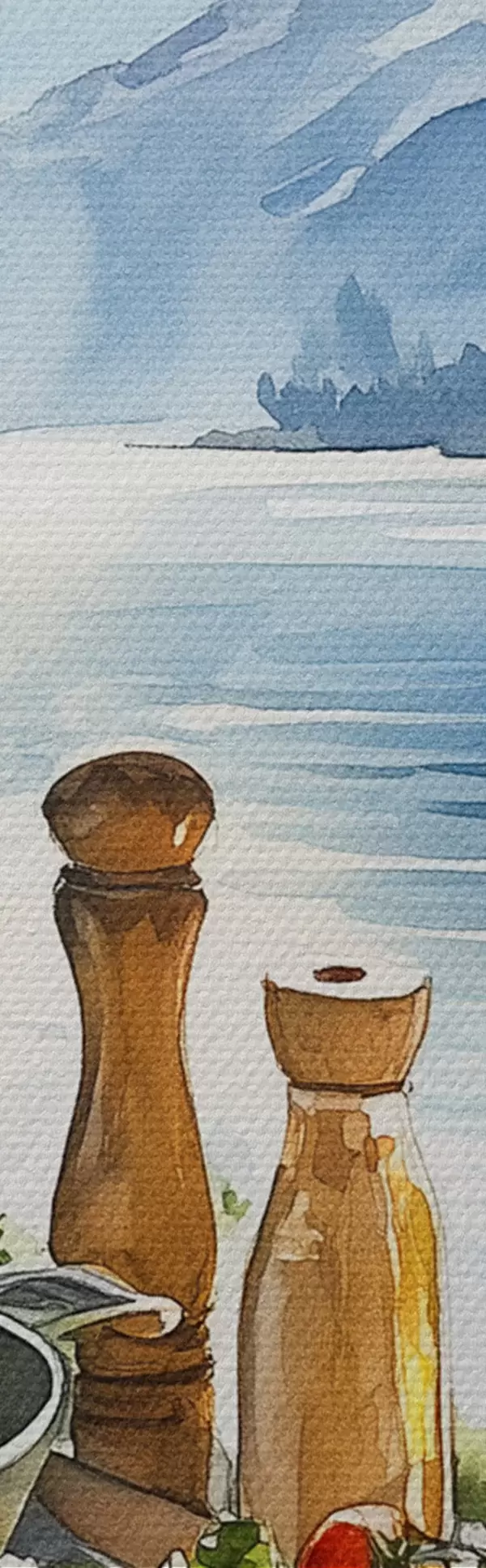 Kép Gyönyörű nyári reggel, tó, akvarell stílus, reggeli, utazás Nr r42433