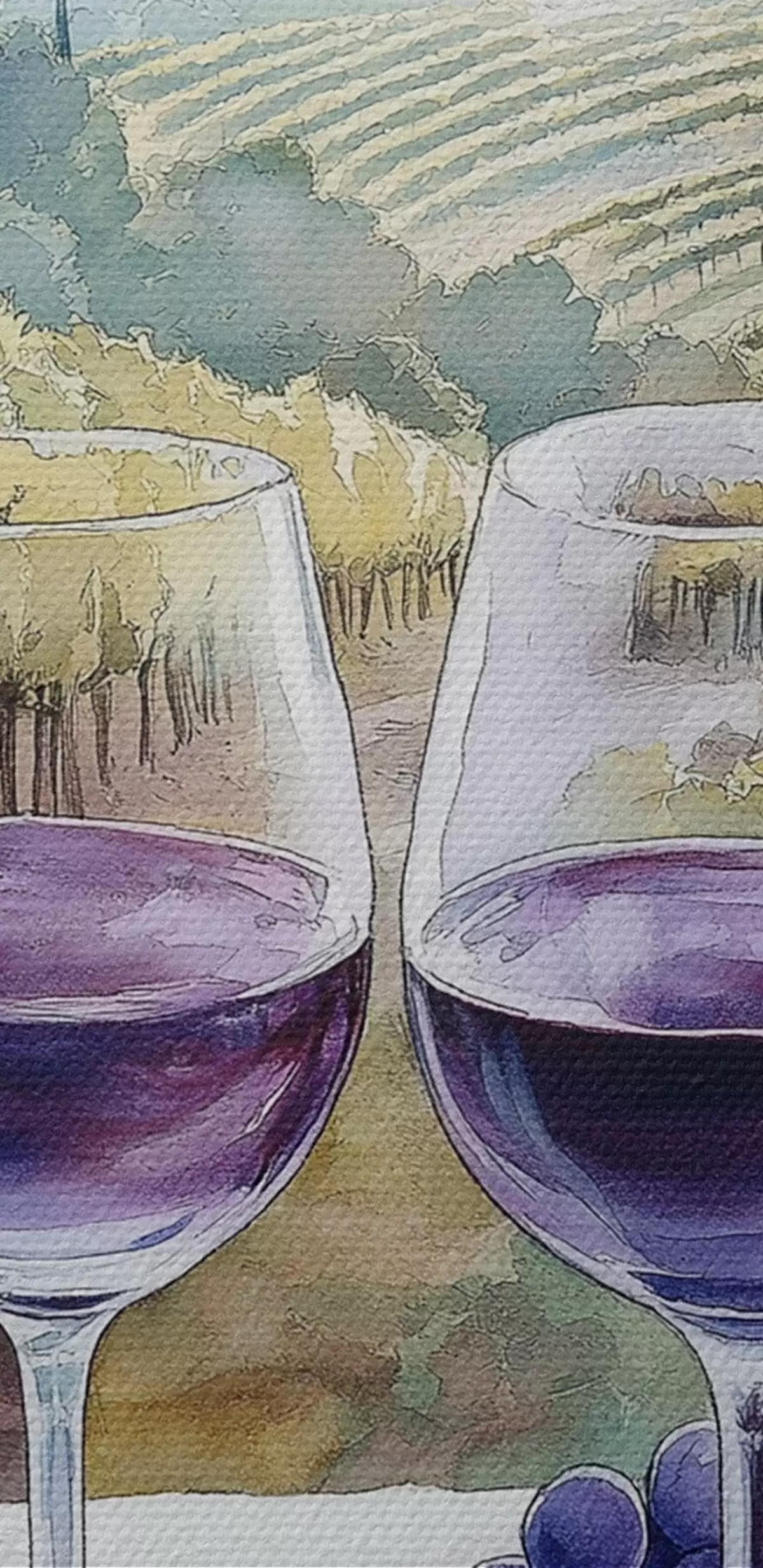 Kép Akvarell stílusú toszkánai tájak, boros udvarok, szőlő Nr r42440