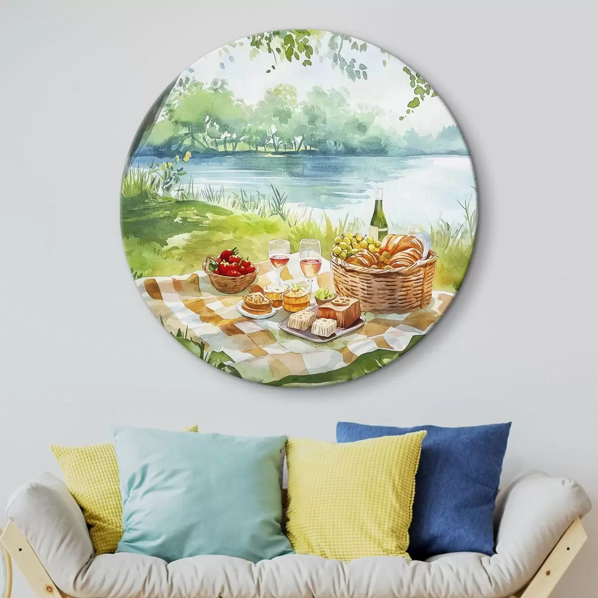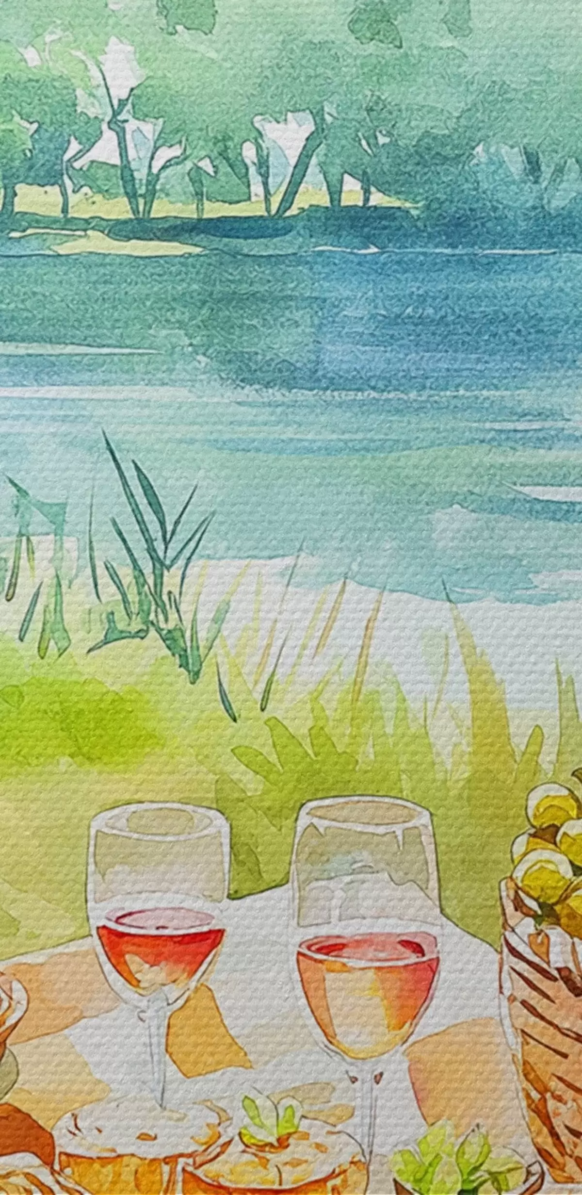 Kép Piknik esztétika, nyári természet, tó, romantikus, akvarell stílusban Nr r42450
