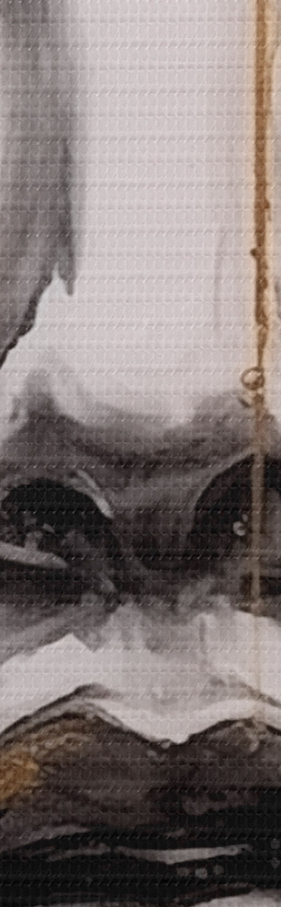 Ahhoz, hogy a vásznat a feszítőrúdra feszítsük anélkül, hogy a kép megsérülne, tükrözött képet használunk.