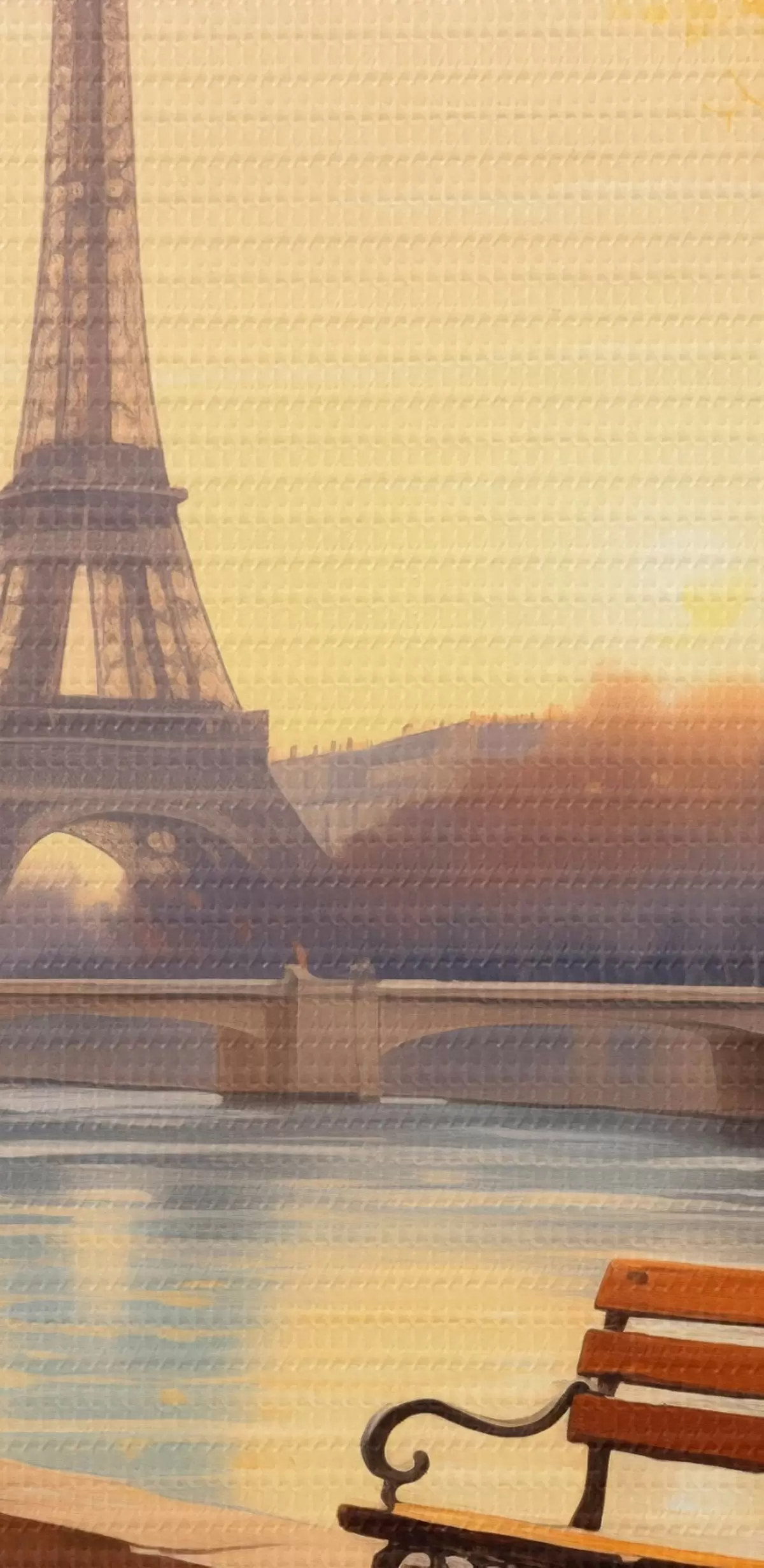 Kép Ősz Párizsban, kilátással az Eiffel-toronyra, a Szajna partján levelekkel borított padok és utcai lámpák, amelyek még romantikusabbá teszik a hangulatot. Nr r42577