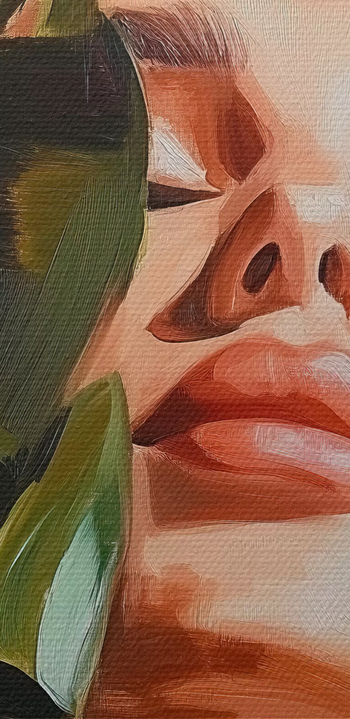 Kép Női portré egy monstera levéllel, ecsetvonások utánzásával Nr r42597