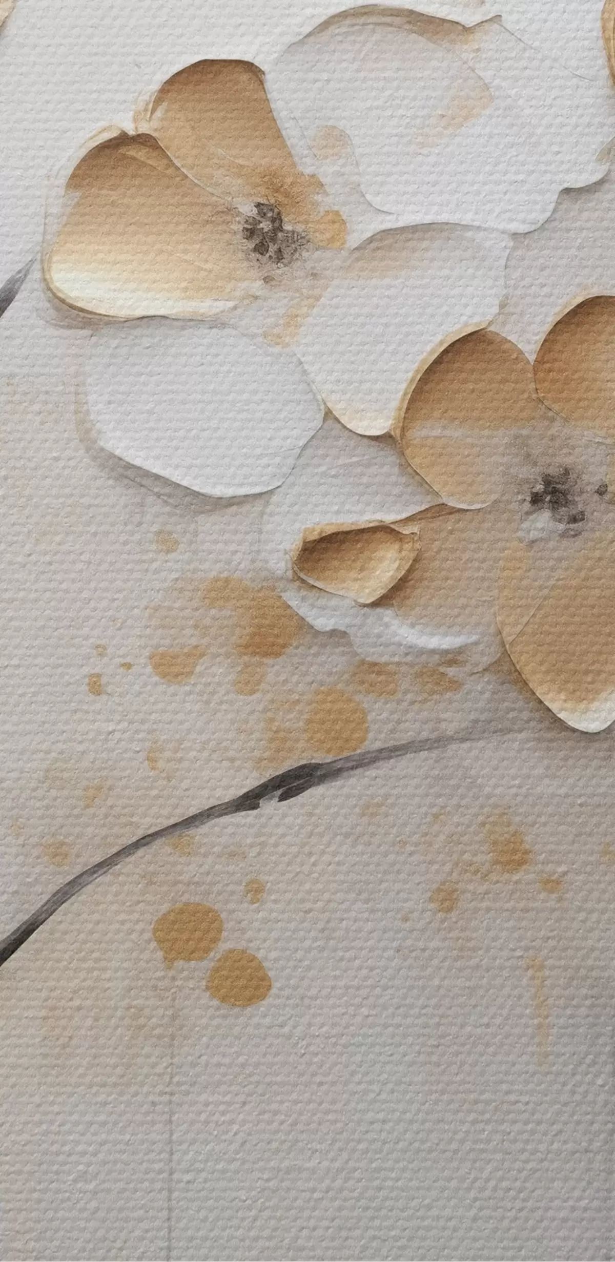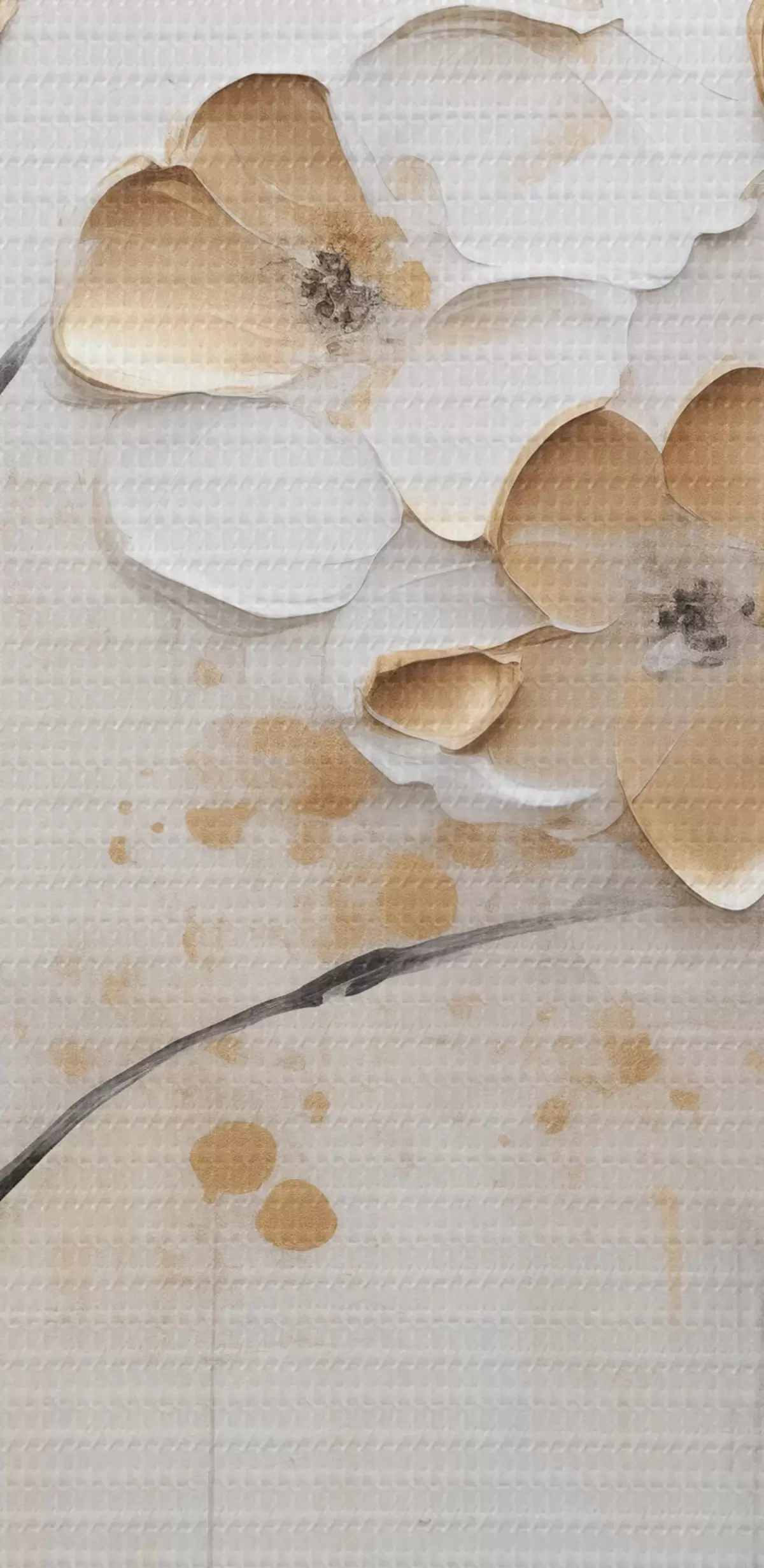 Kép Virágok texturált szirmokkal, lágy, tompa háttérrel, absztrakt színfoltokkal és függőleges vonalakkal Nr r42713