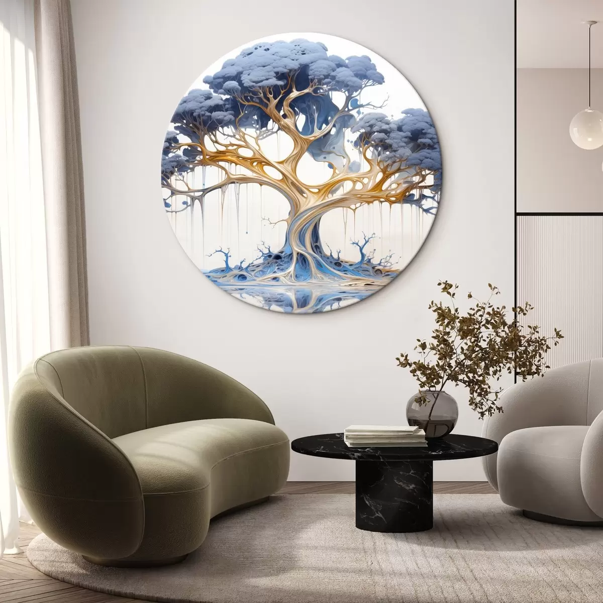 Kép Stilizált fa, bonyolult ágakkal és lombokkal, kék és sárga árnyalatok keverékével Nr r42722