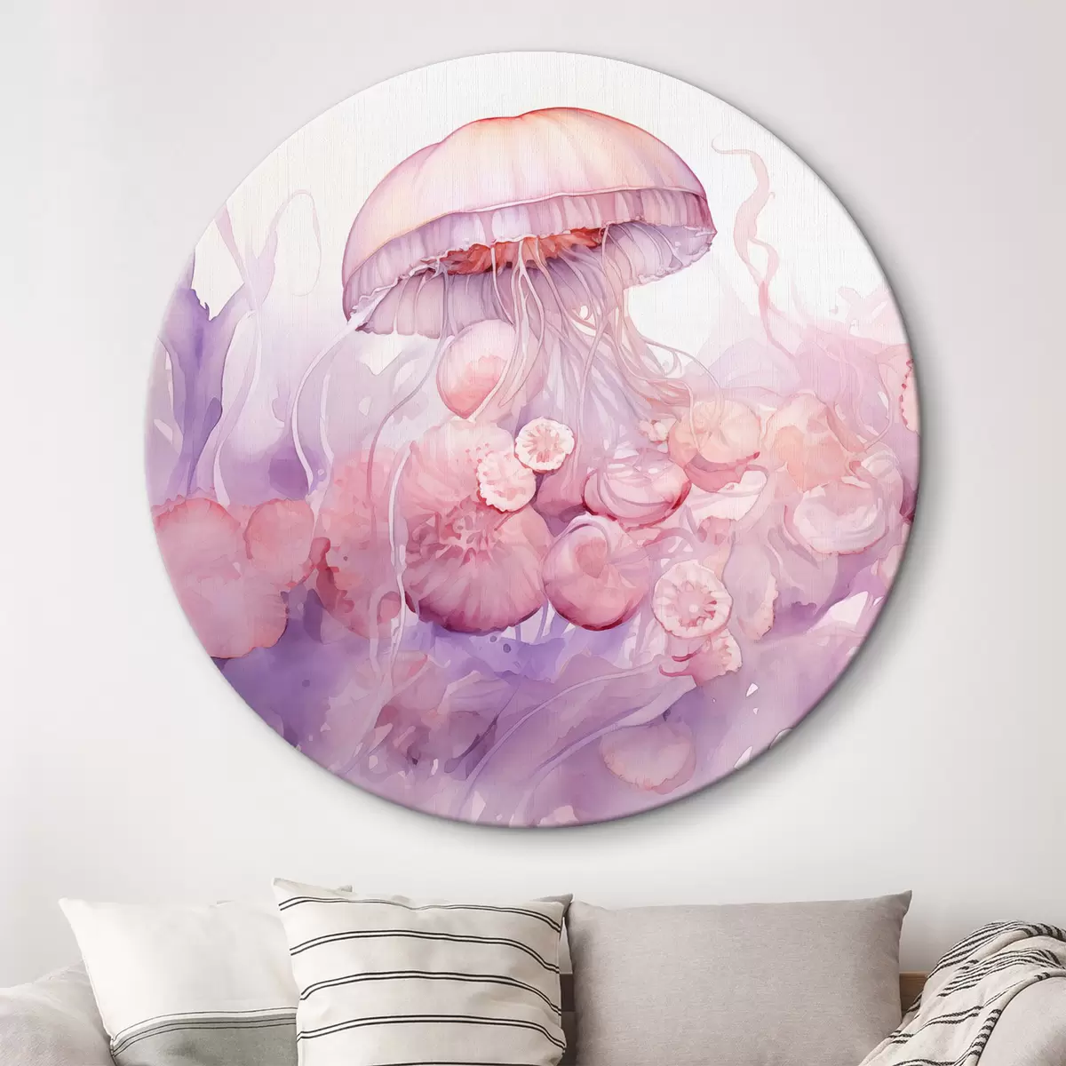 Kép Lágy rózsaszín és lila árnyalatok örvényében lebegő rózsaszín medúza, absztrakt formákkal körülvéve Nr r42730