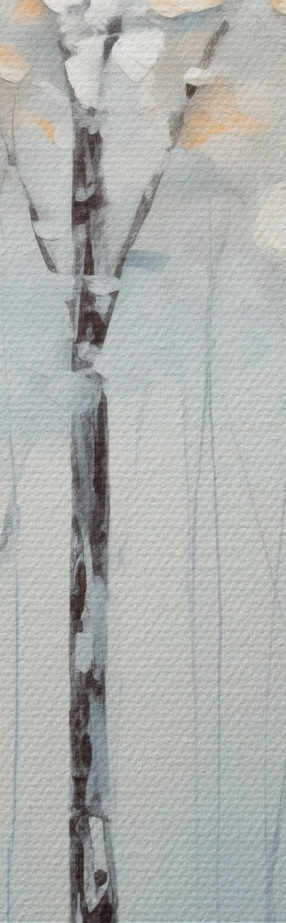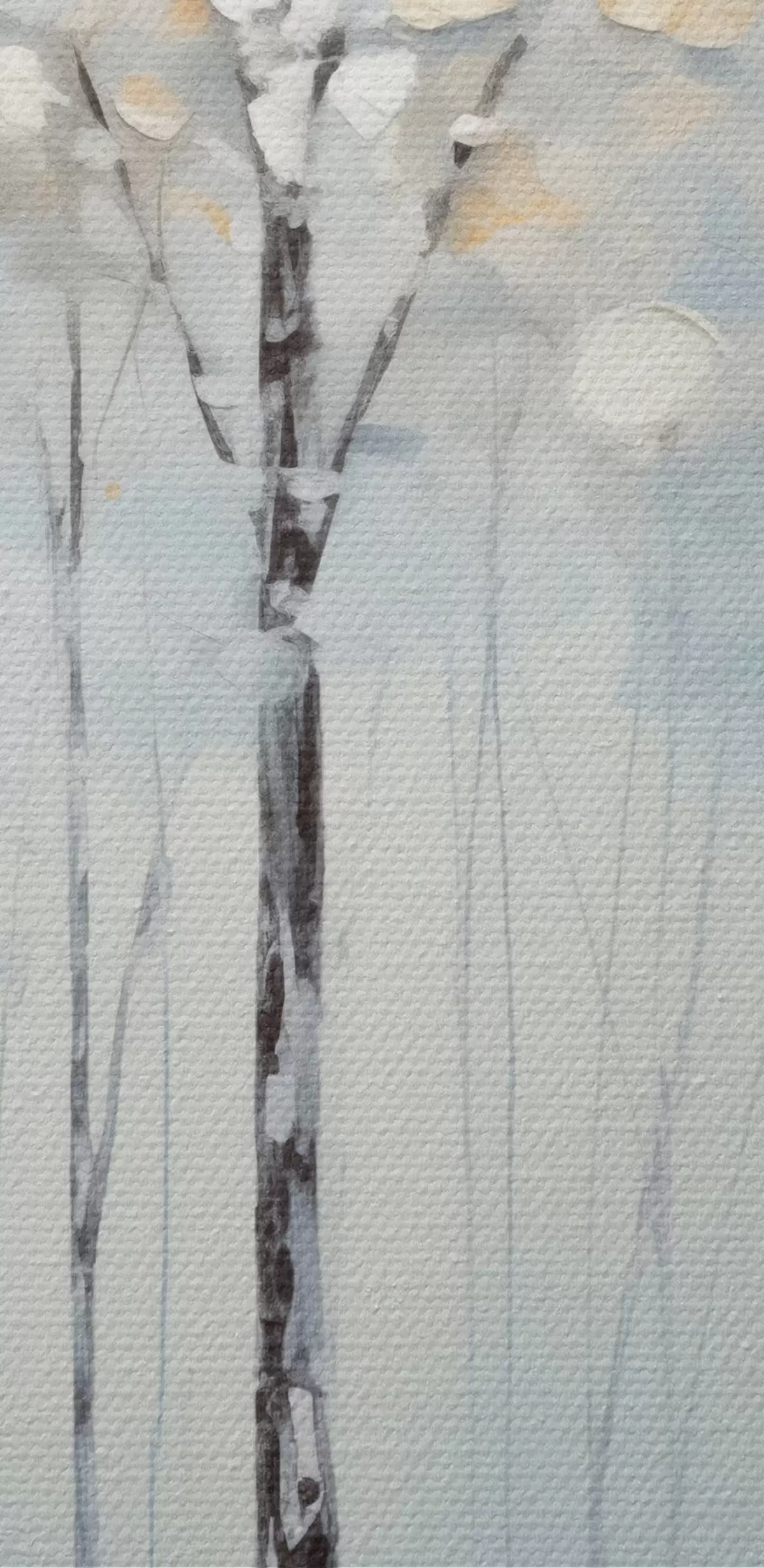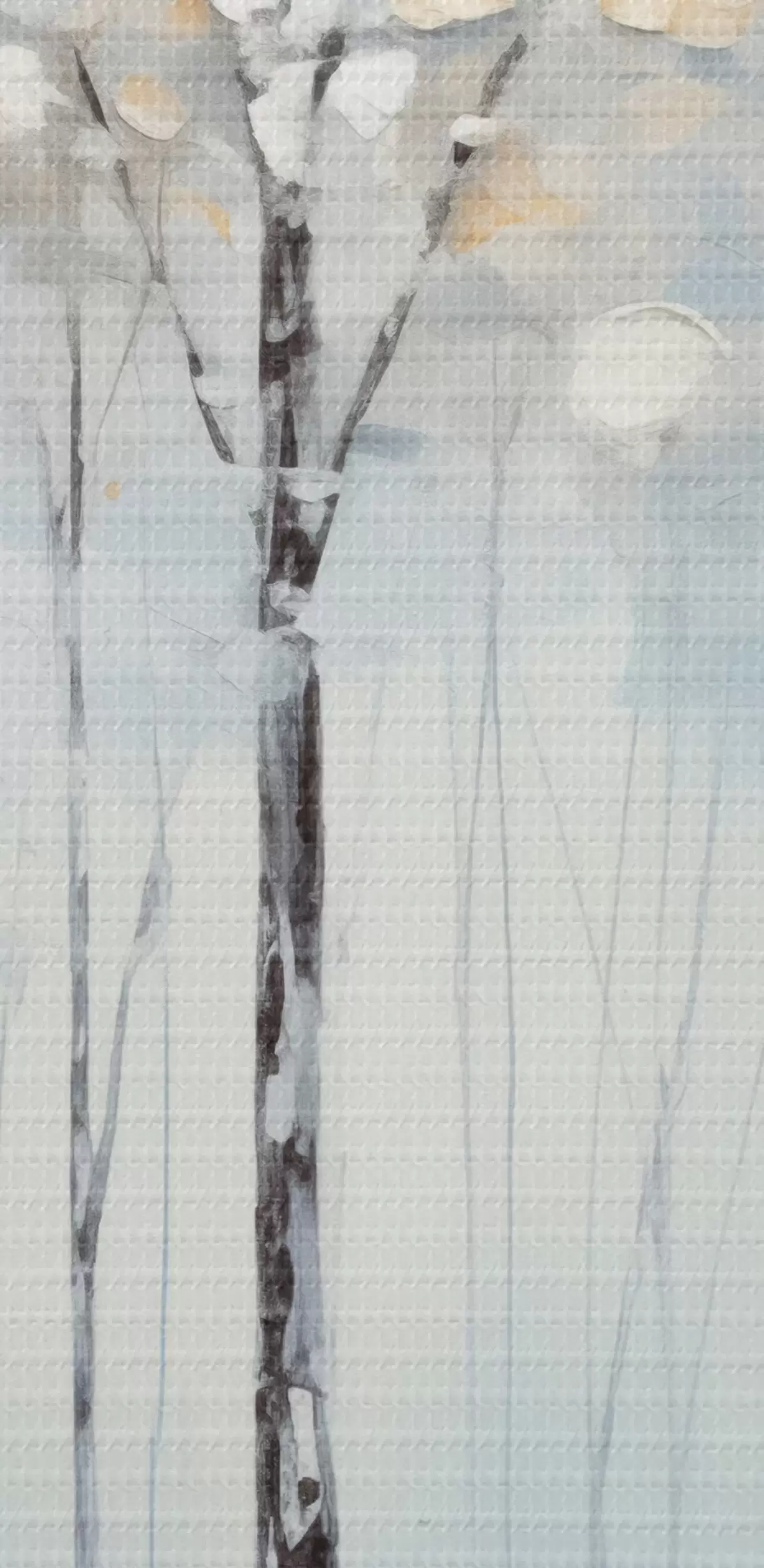 Kép Magas, karcsú fák kék levelekkel és sárga árnyalatokkal lágy kék háttéren, olajfestmény utánzat Nr r42731