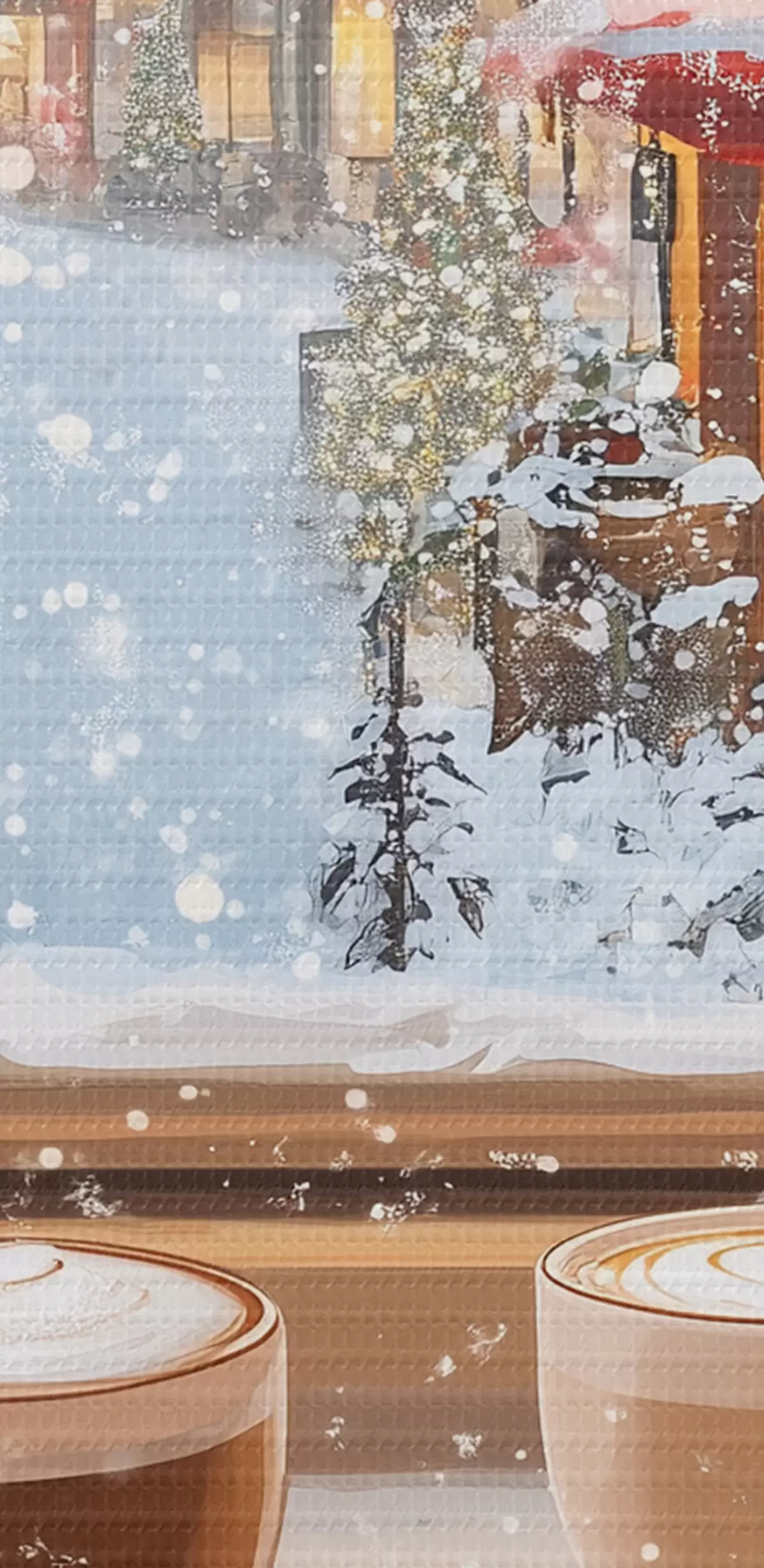 Kép Hangulatos téli kávézó, kávéscsészék, akril stílus, régi városi építészet Nr r42795