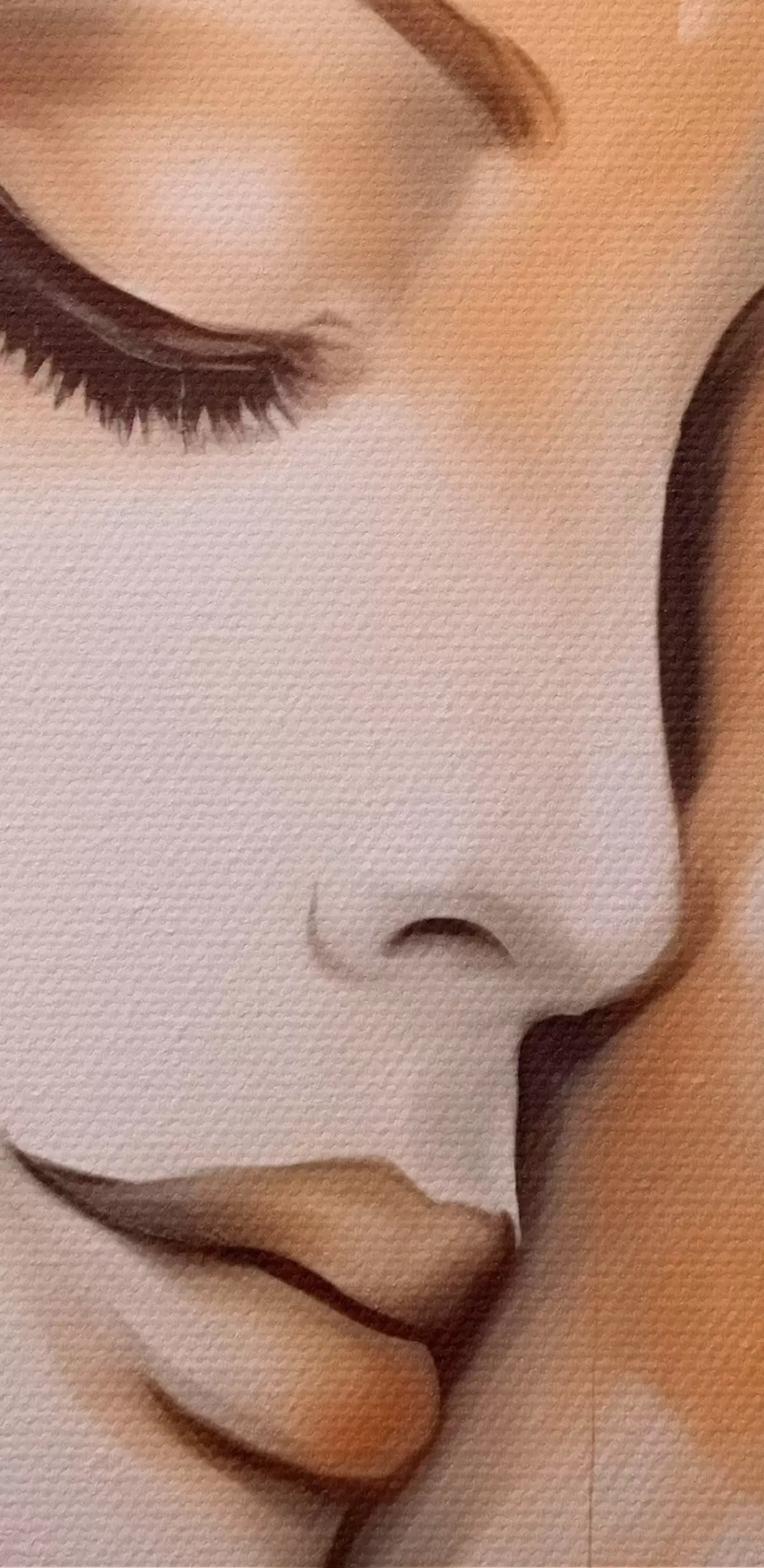 Ahhoz, hogy a vásznat a feszítőrúdra feszítsük anélkül, hogy a kép megsérülne, tükrözött képet használunk.