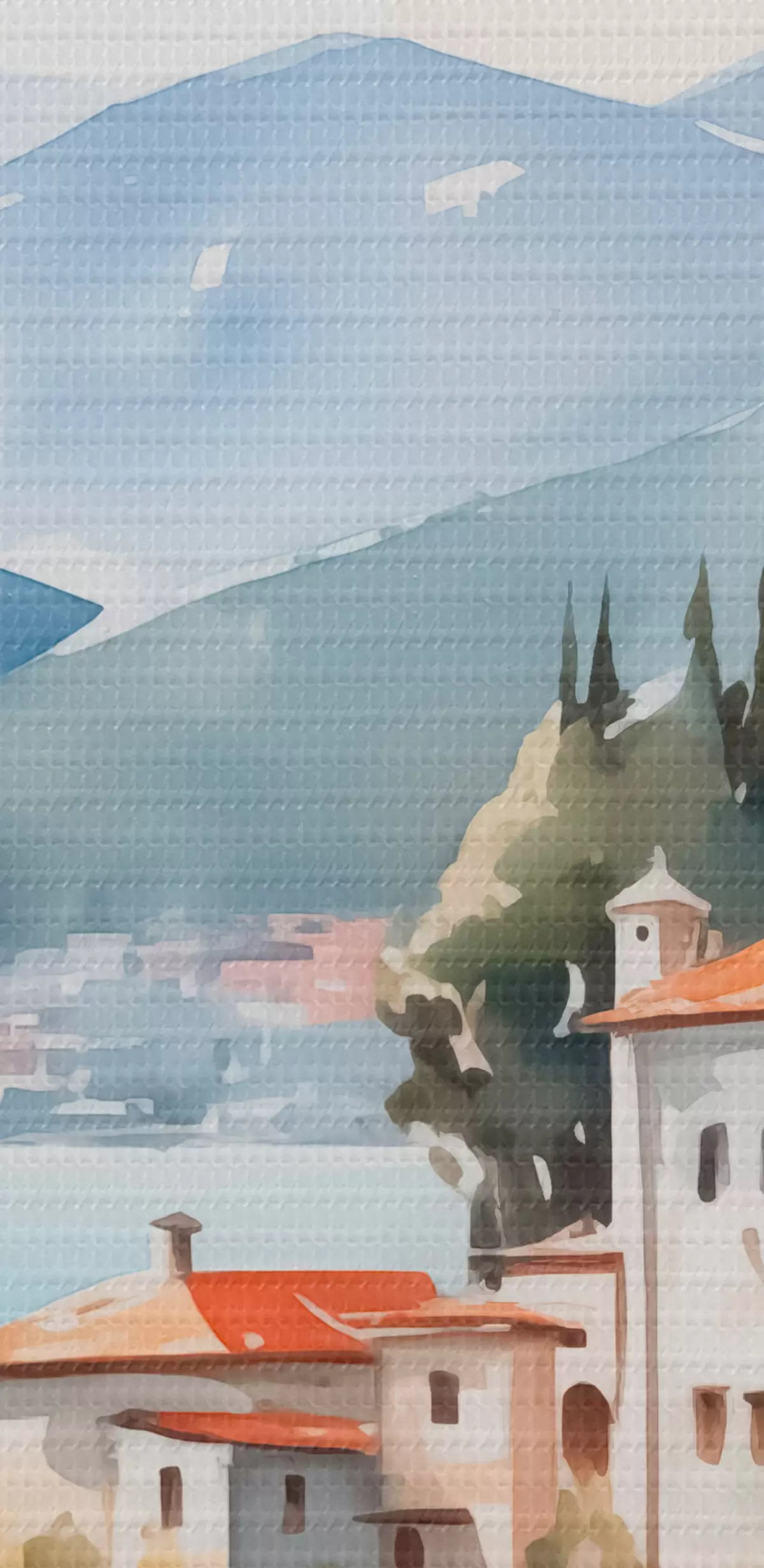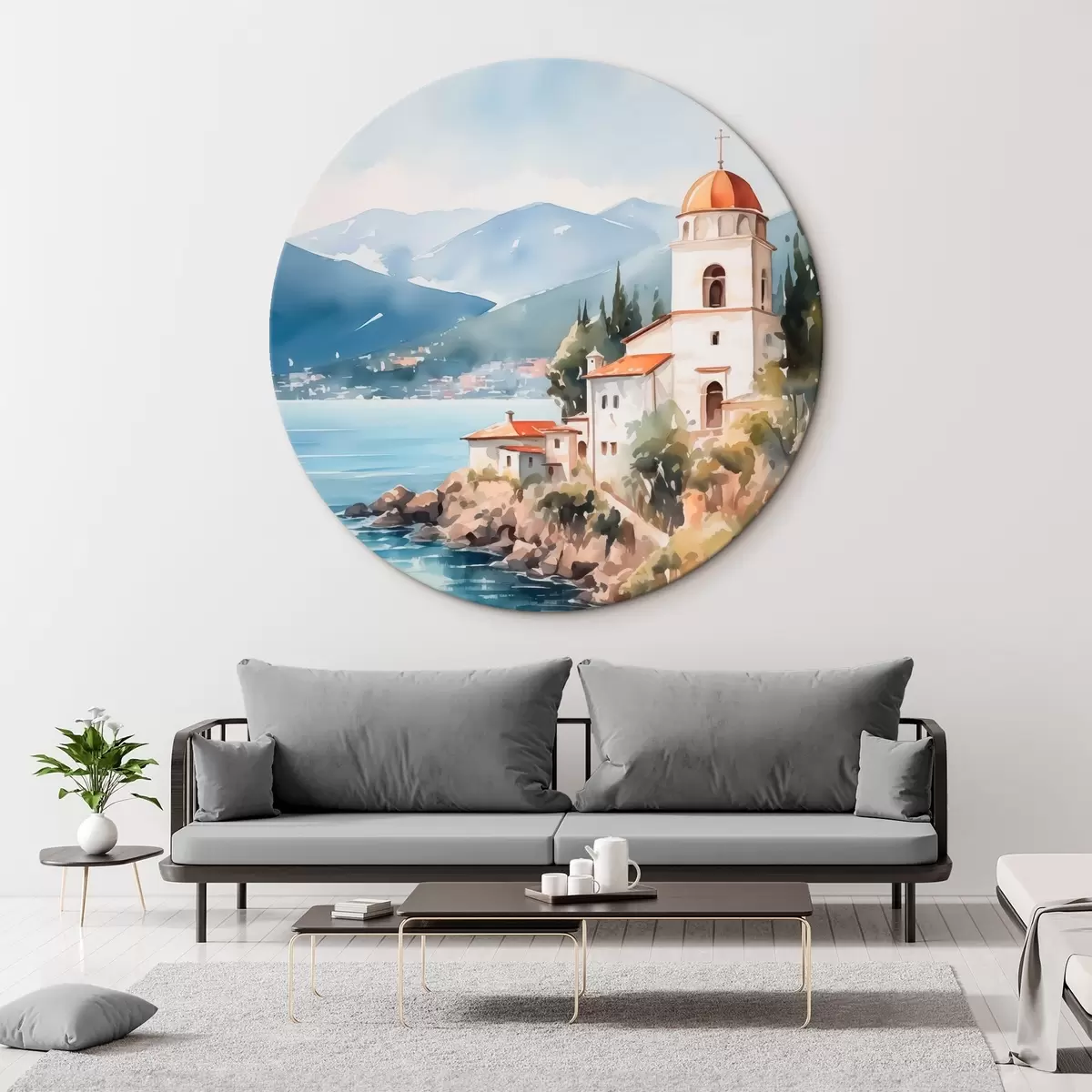 Kép Tengerparti templom a háttérben hegyekkel Nr r42962
