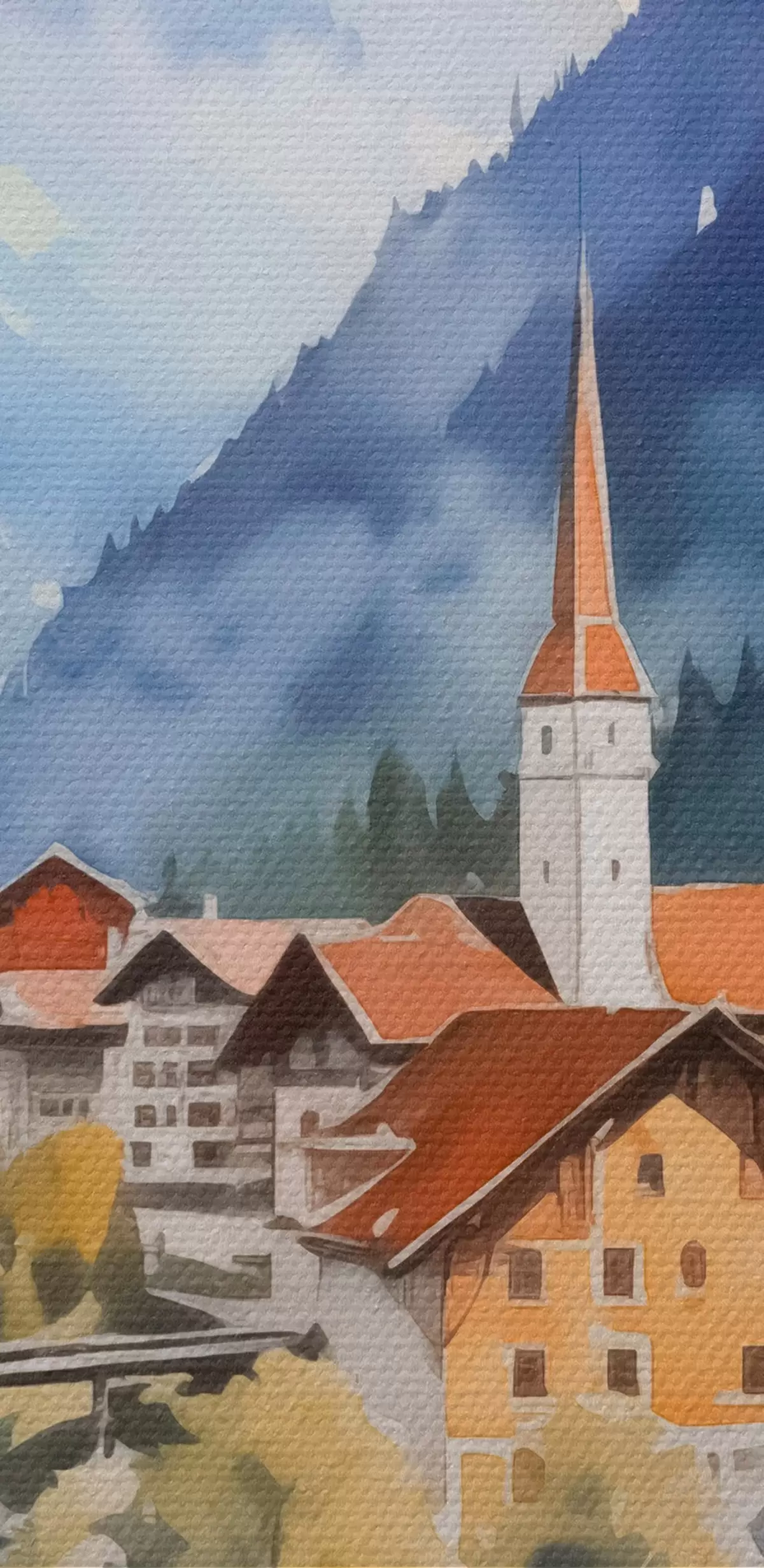 Kép Falu a hegyek közelében utánzás akvarell Nr r42964