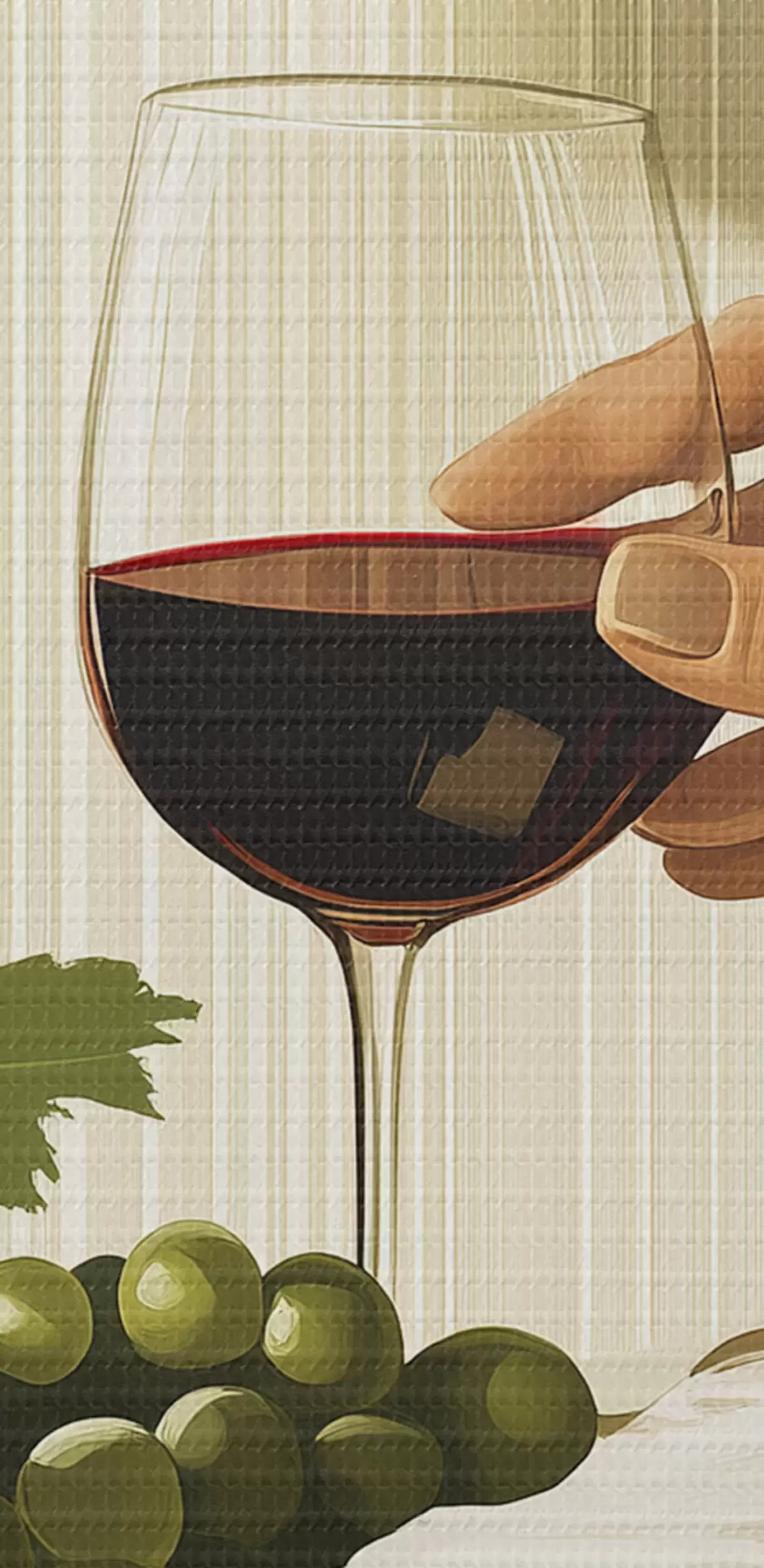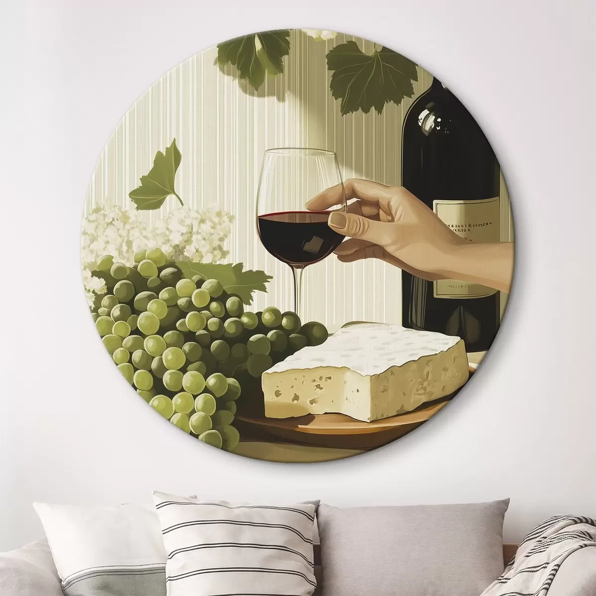 Kép Szőlő sajttal, egy üveg bor, vintage stílus, fehér virágok Nr r43052
