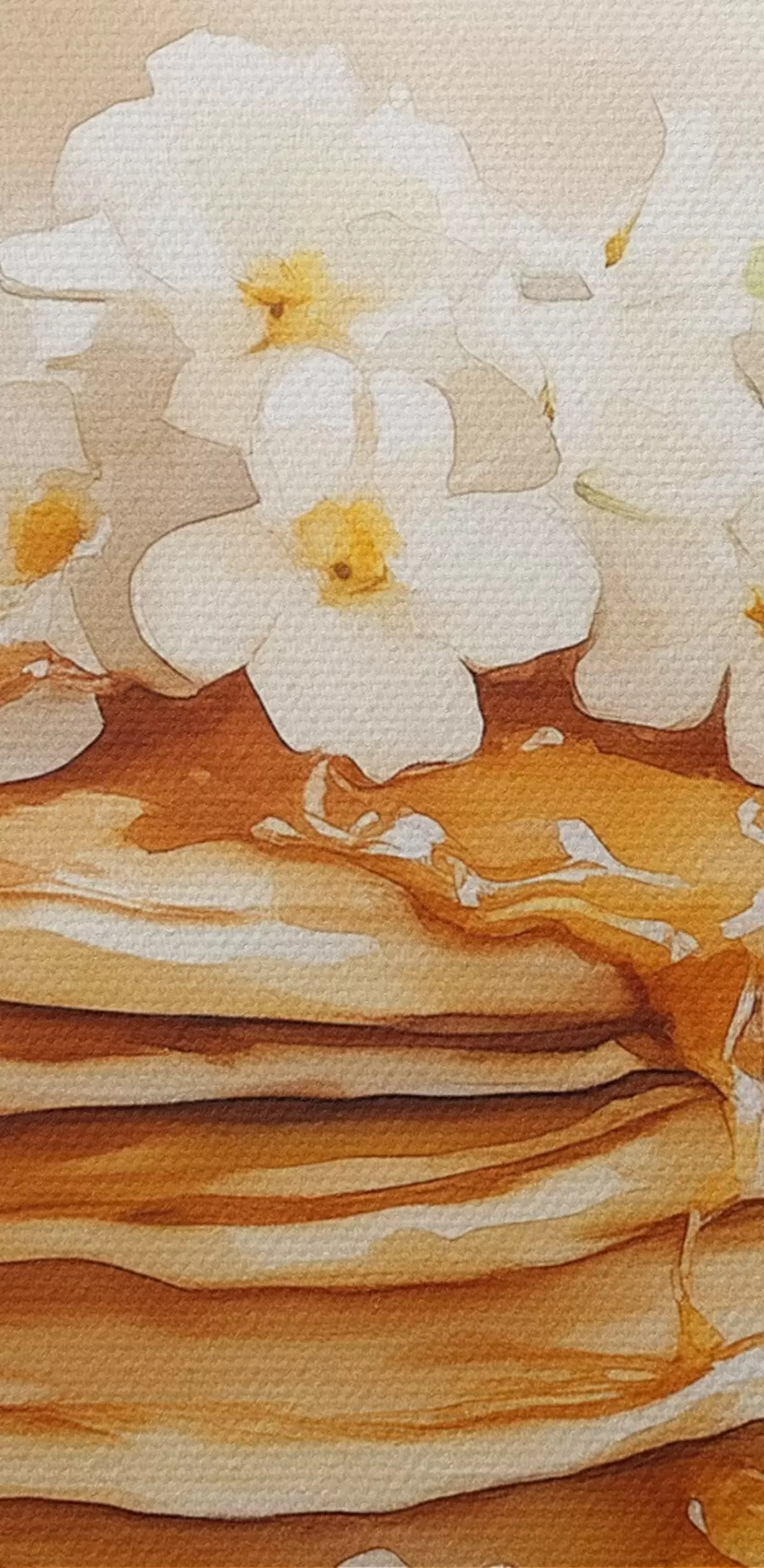 Kép Palacsinta mogyoróvajjal, fehér virágok, akvarell stílusú rajz Nr r43065