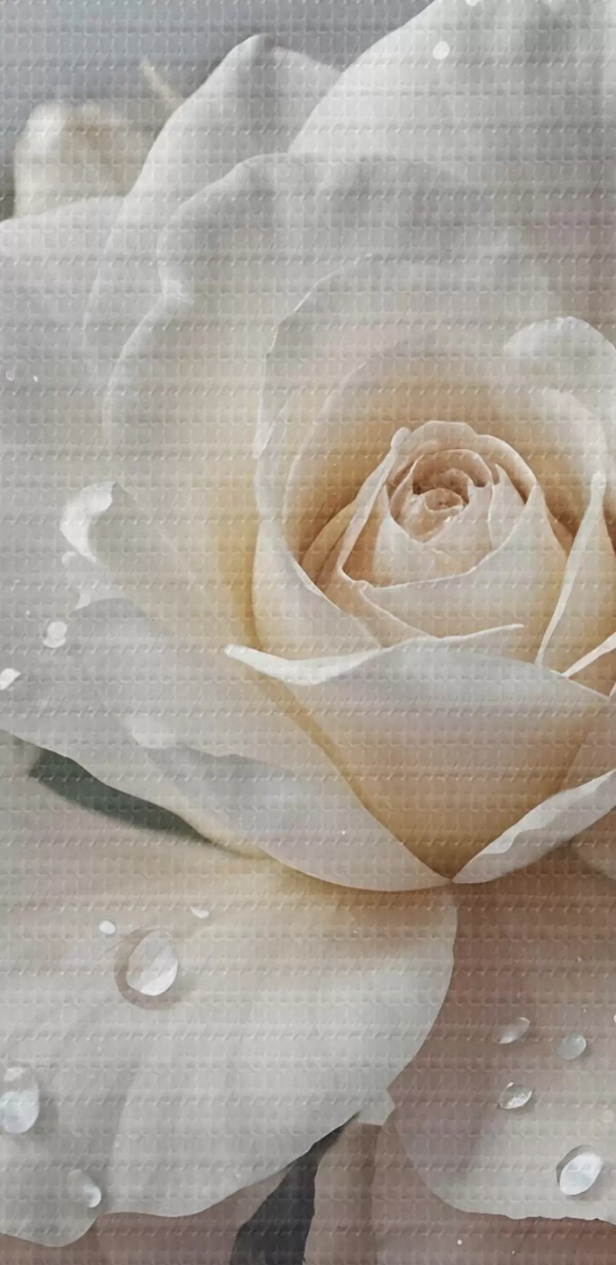 Kép Fehér rózsák csoportja vízcseppekkel a szirmokon, néhány zöld levéllel, tompa háttér, lágy fény Nr r43163