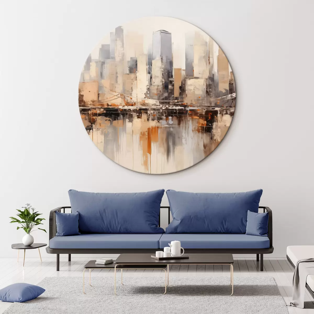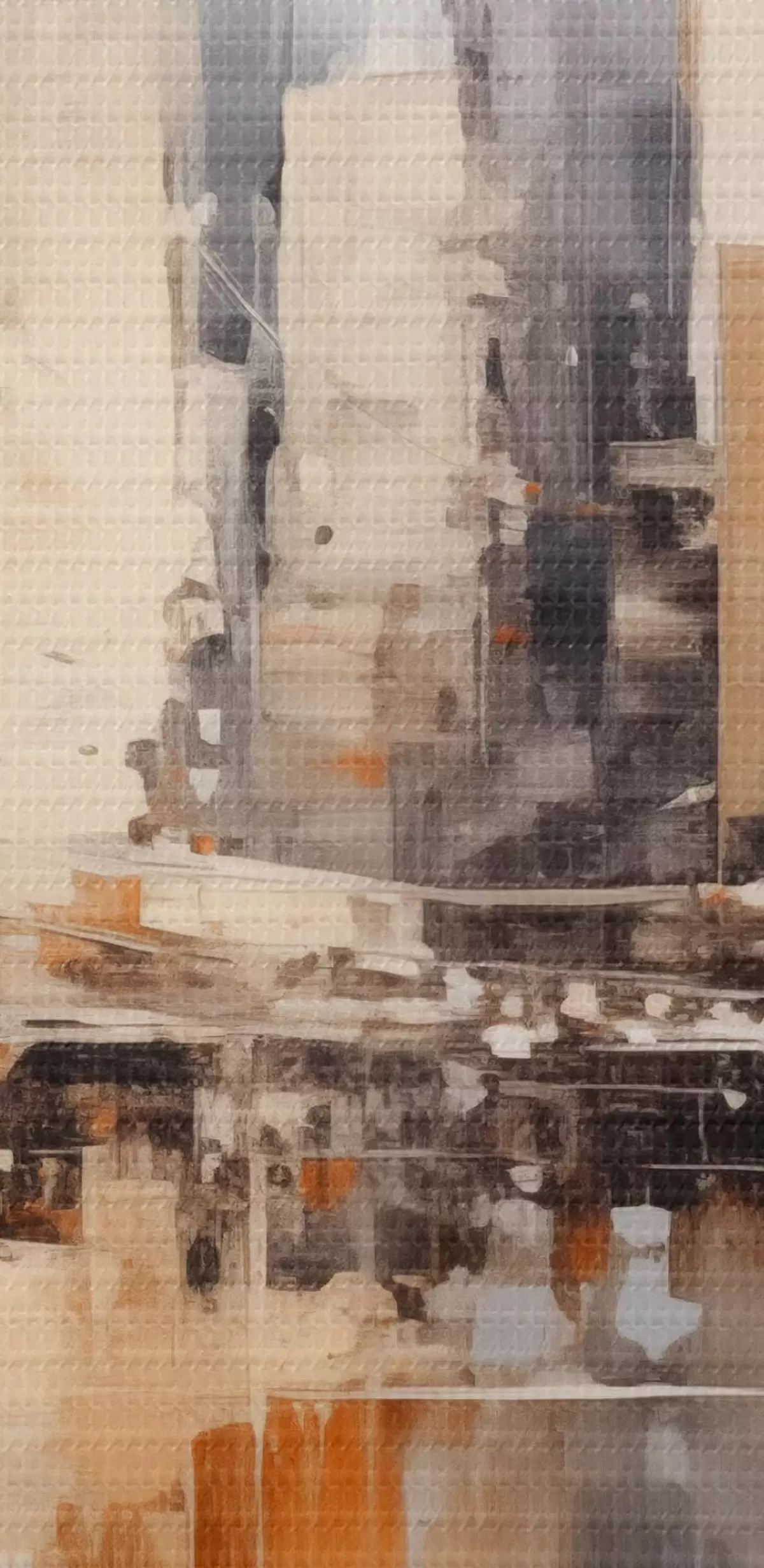 Kép Absztrakt városkép festmény magas épületekkel barna, szürke és fehér árnyalatokban , az alatta lévő vízben tükröződik Nr r43168