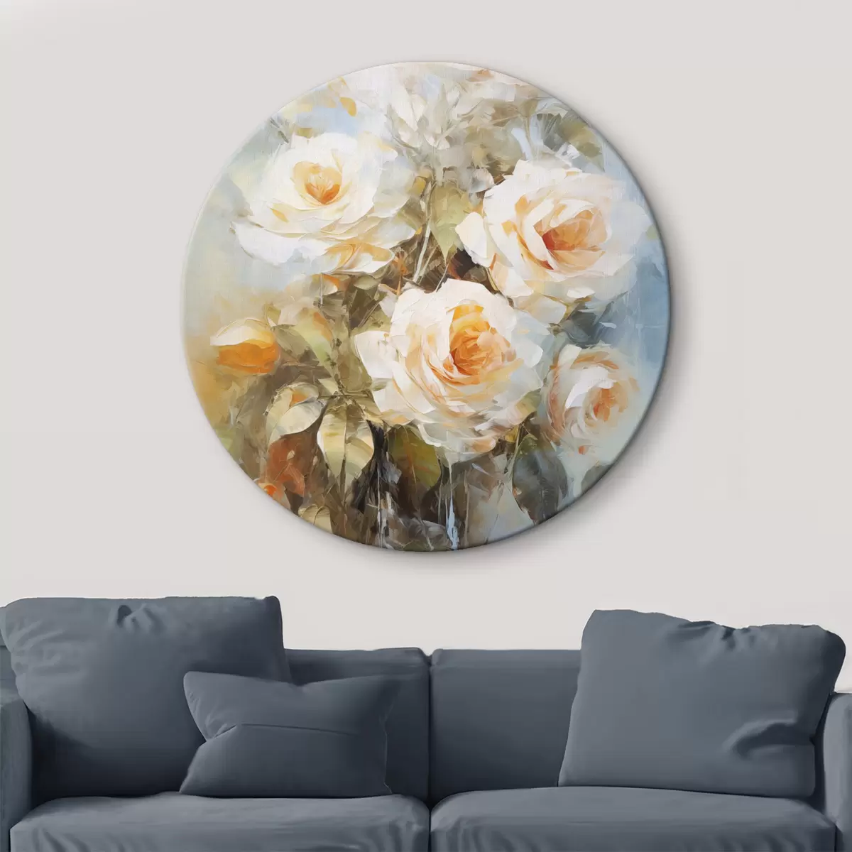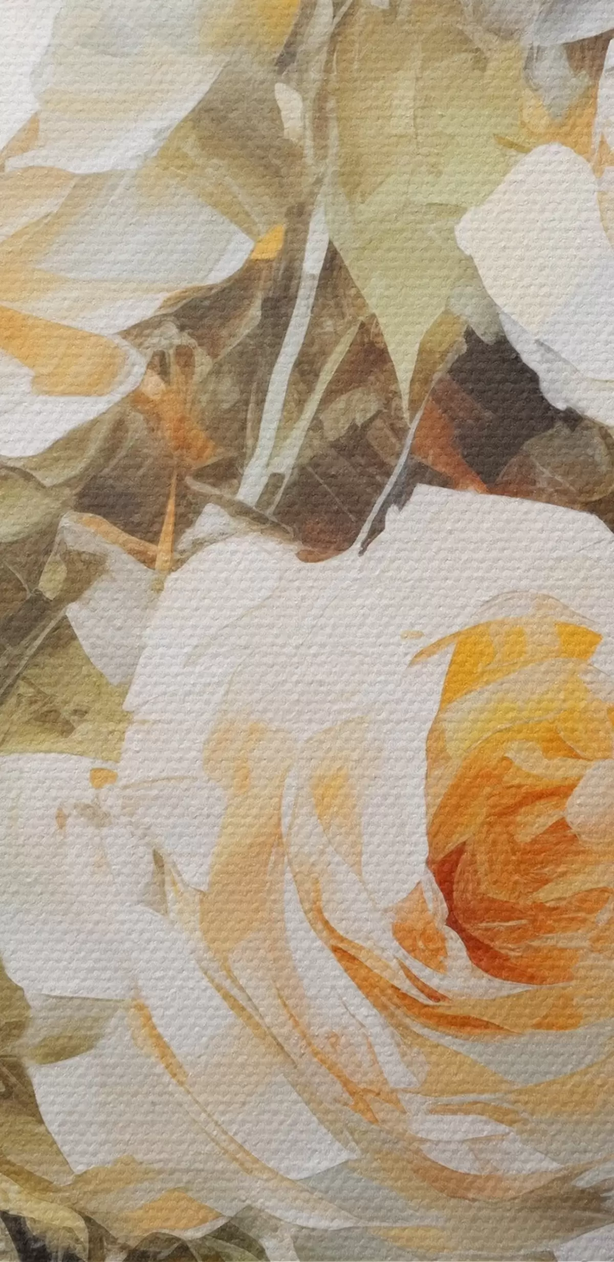 Kép Fehér rózsák narancssárgával, lágy, világoskék háttér előtt, látható ecsetvonásokkal és festői stílussal Nr r43175