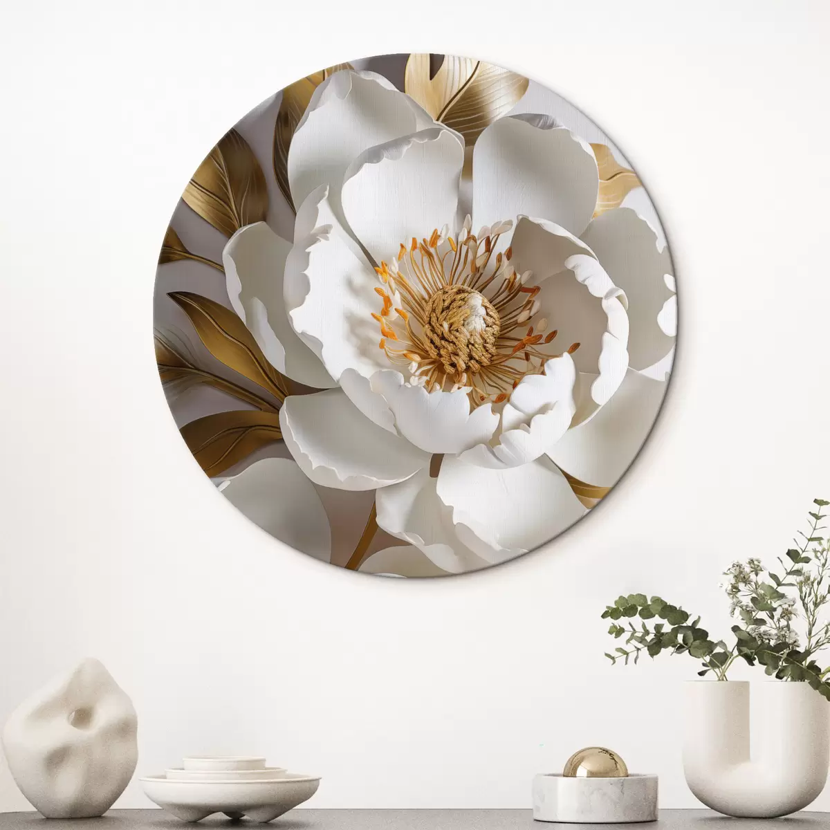 Kép Fehér, finom, részletes, dekoratív pünkösdi rózsavirágok sárga levelekkel, a háttér világos szürke színű Nr r43176