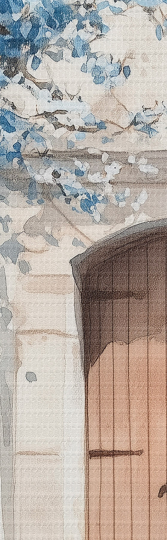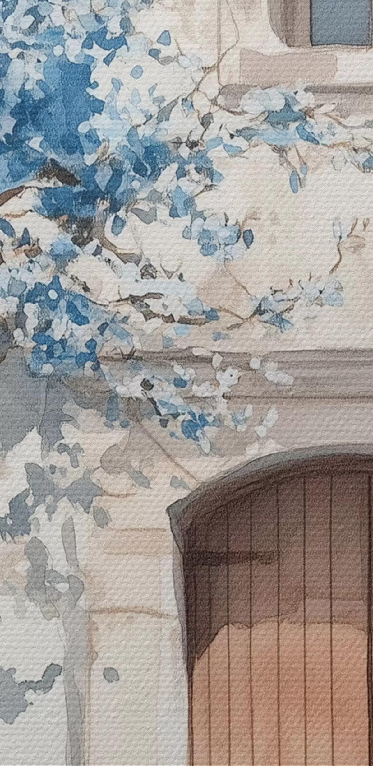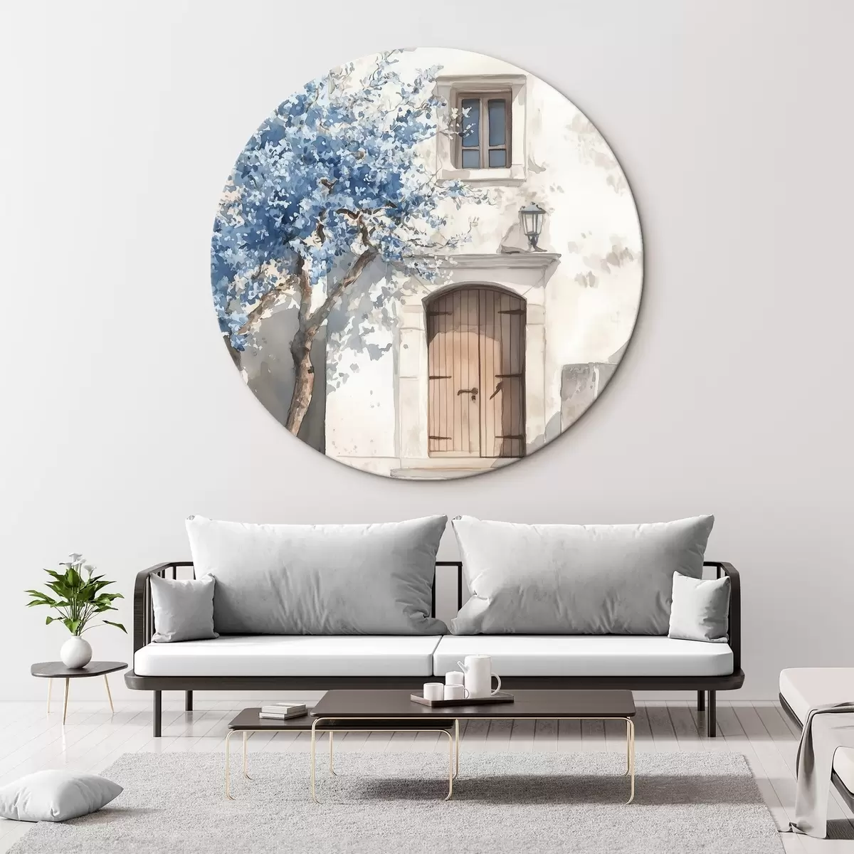 Kerek festmények Görög ház gyönyörű fával, építészet, akvarell stílusban r43178